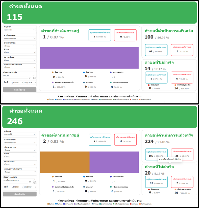 25-05-202446.75เดือนพฤษภาคม 2567 มีประชาชนยื่นคำขอผ่านทาง online จำนวน 115 ราย คำขอทั้งหมด (online และ onsite) จำนวน 246 ราย