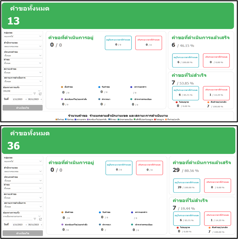 30-11-202336.11เดือนพฤศจิกายน 2566 มีประชาชนยื่นคำขอผ่านทาง online จำนวน 13 ราย คำขอทั้งหมด (online และ onsite) จำนวน 36 ราย