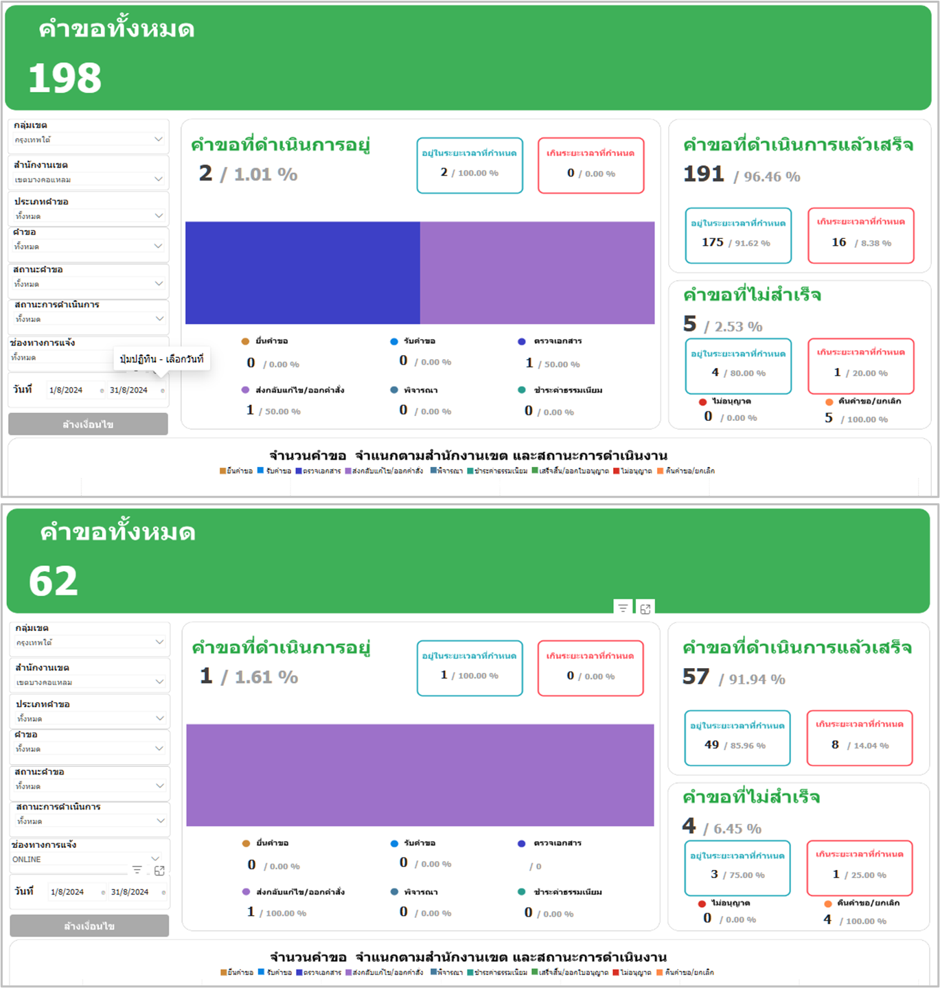 23-08-202431.31เดือนสิงหาคม 2567 มีประชาชนยื่นคำขอผ่านทาง online จำนวน 62 ราย คำขอทั้งหมด (online และ onsite) จำนวน 198 ราย