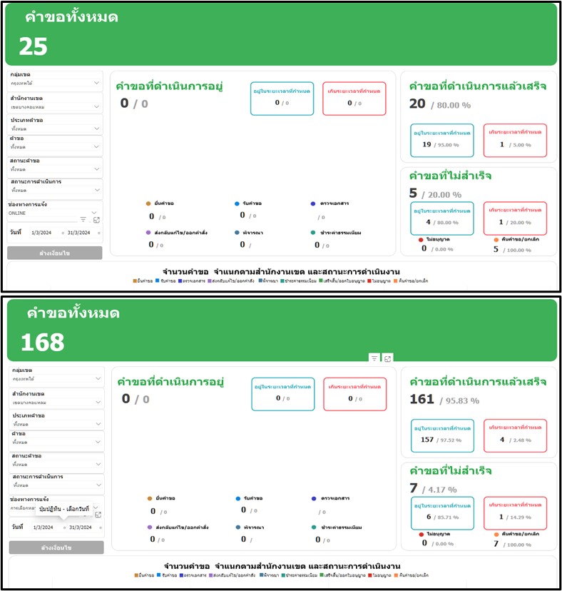 26-03-202414.88เดือนมีนาคม 2567 มีประชาชนยื่นคำขอผ่านทาง online จำนวน 25 ราย คำขอทั้งหมด (online และ onsite) จำนวน 168 ราย
