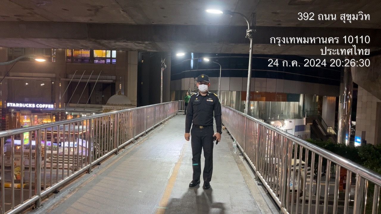 24-09-20240.00ระดับความสำเร็จของสภาพแวดล้อมที่เป็นพื้นที่เสี่ยงต่อการเกิดอาชญากรรมลดลง ฝ่ายเทศกิจ สำนักงานเขตคลองเตย ได้ดำเนินการจัดเจ้าหน้าที่ชุด 255 และ 254 ตรวจตู้เขียววันละสองครั้งบริเวณจุดดังนี้ 1. ปากซอยคั่วพริก 2. ซอยภูมิจิตร 3. ท่าเรือภาษี กรมศุลกากร 4. ถนนดวงพิทักษ์ 5. ปากซอยสุขุมวิท 10