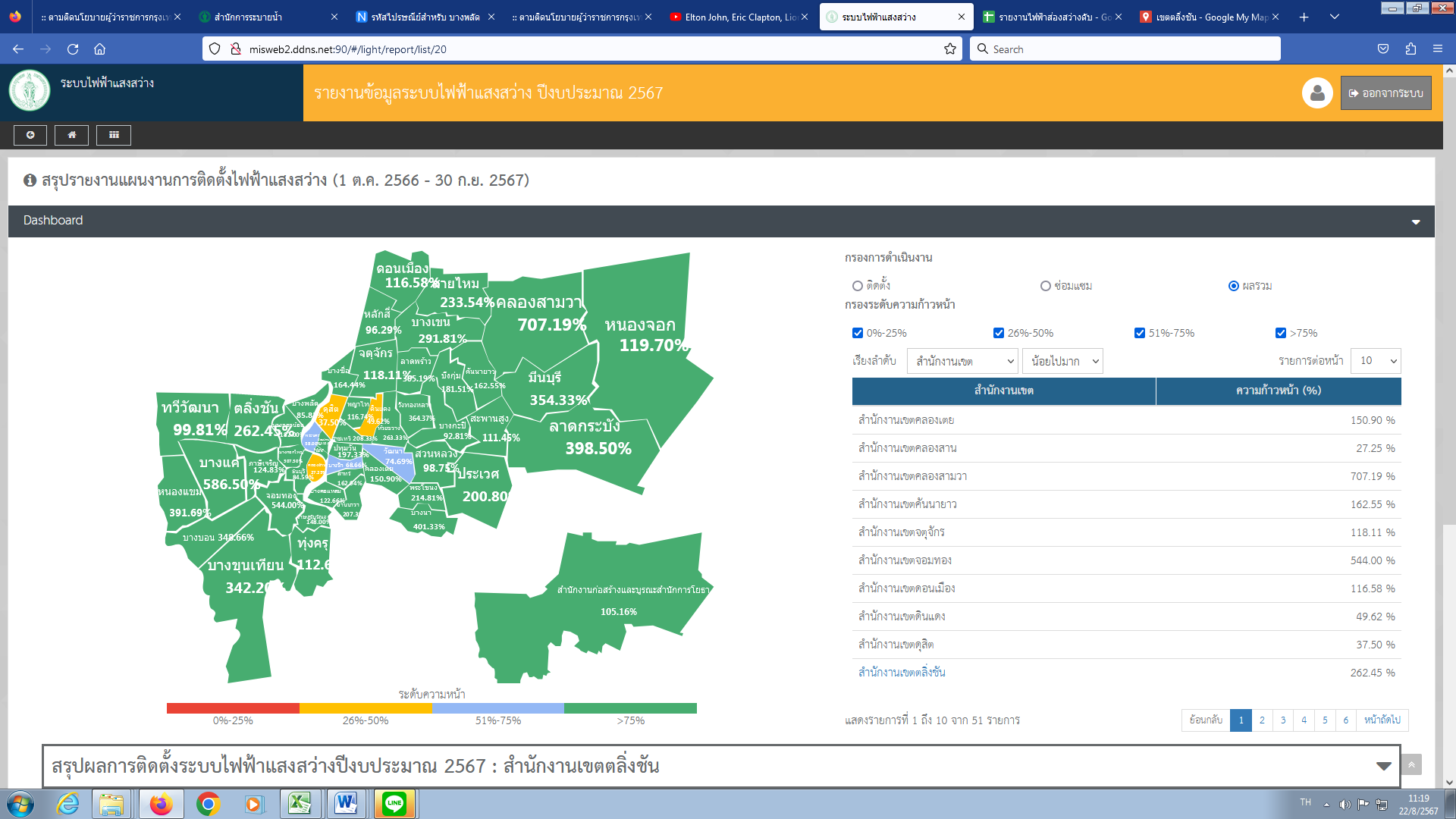- ผลการดำเนินการ ติดตั้งแล้วเสร็จ 37 ดวง ซ่อมแซมแล้วเสร็จ 1,333 ดวง รวมทั้งหมด 1,370 ดวง