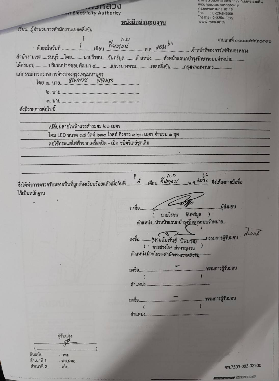 ๗.๒ กำหนดช่องทางการรายงานผลดำเนินการติดตั้งและซ่อมแซมไฟฟ้าให้เหลือเพียงช่องทางเดียว