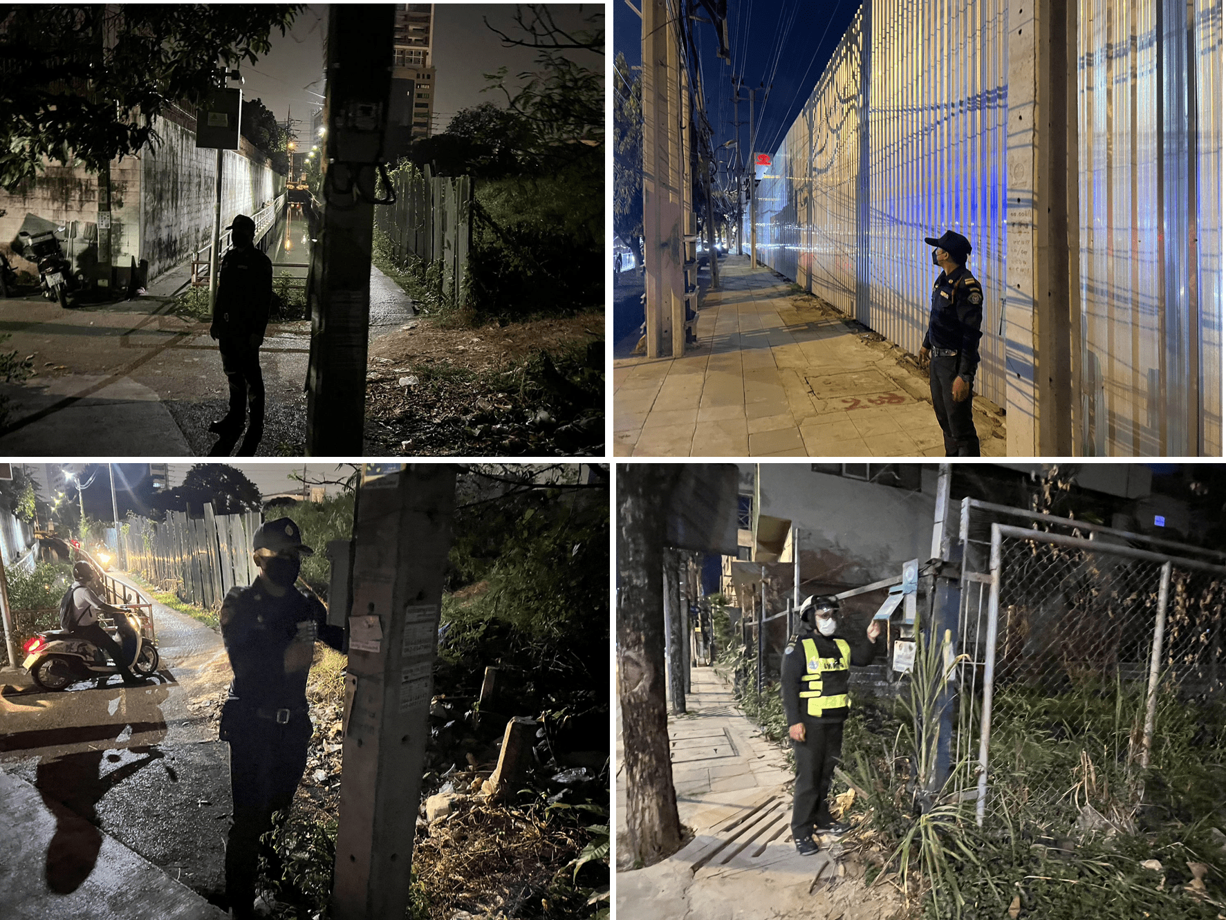 ![]() | 30-11-2023 | 10.00 | ตรวจจุดเสี่ยงอาชญากรรม วันละ 2 ครั้ง/วัน/จุด และดำเนินการปรับปรุงกายภาพจุดเสี่ยง พร้อมตรวจสอบไฟฟ้าส่องสว่าง ของจุดเสี่ยงอาชญากรรม ทั้ง 10 จุด ประกอบด้วย 1. สุดซอยตระกูลโต๋ว จันทน์ 43 แยก 18 2. ชุมชนบางคอแหลม ซอยเจริญกรุง 107 3. สะพานลอยคนเดินข้าม หน้าวัดราชสิงขร 4. ที่รกร้างปากซอยพระรามที่ 3 ที่ 18 5. หน้าบ้านเลขที่ 644/43 ถนนพระรามที่ 3 6. ซอยเจริญกรุง 107 แยก 7 (ซอยประดู่ 7) 7. สวนใต้สะพานพระราม 3 8. สุดซอยเจริญกรุง 109 9. ที่รกร้างข้างโชว์รูมโตโยต้า ถนนพระรามที่ 3 10. วัดราชสิงขร | ||