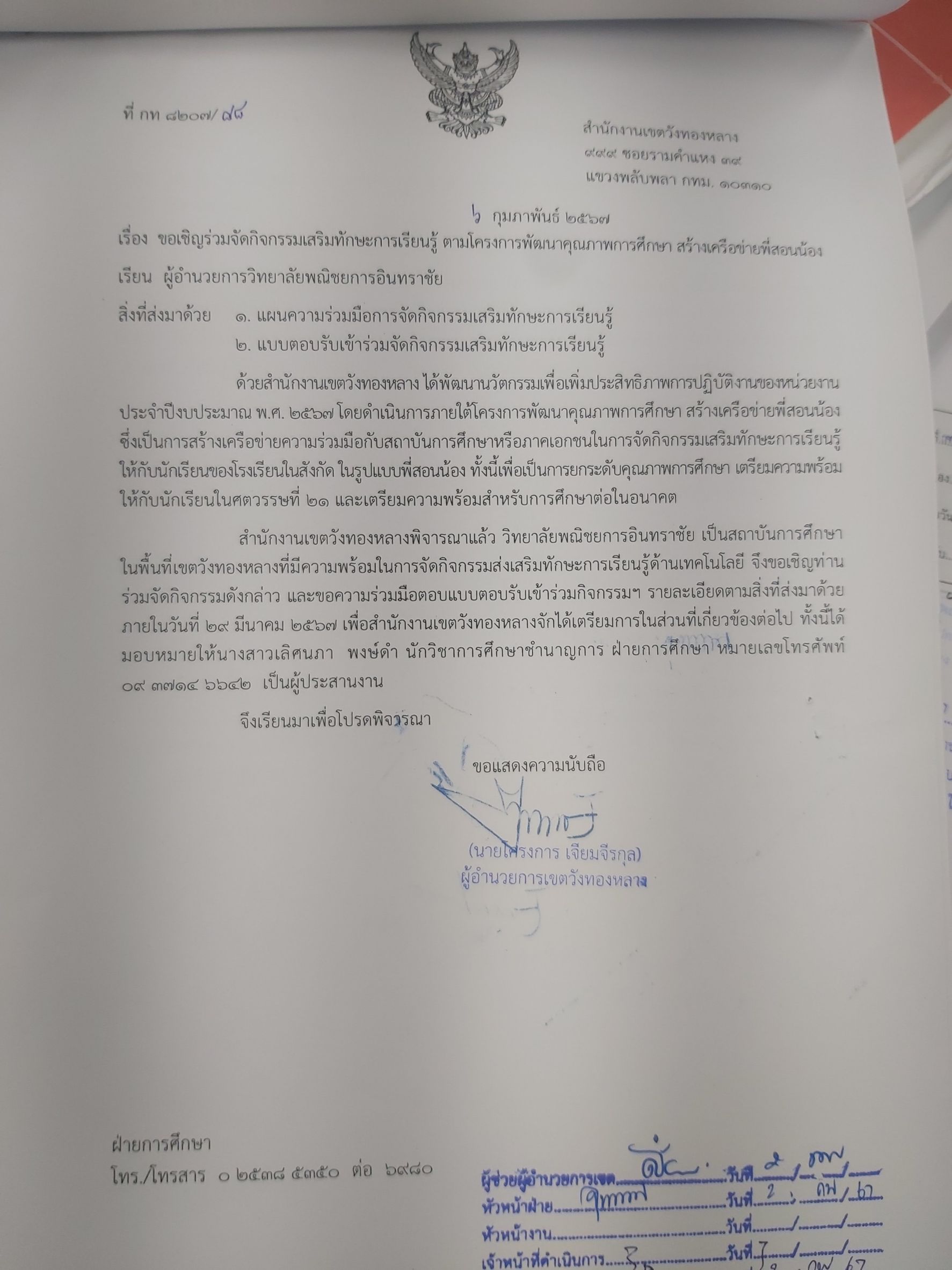 ![]() | 29-04-2024 | 0.00 | ![]() | ดำเนินการประสานวิทยาลัยพณิชยการอินทราชัย เพื่อขอเชิญเข้าร่วมเป็นเครือข่ายด้านเทคโนโลยี | |