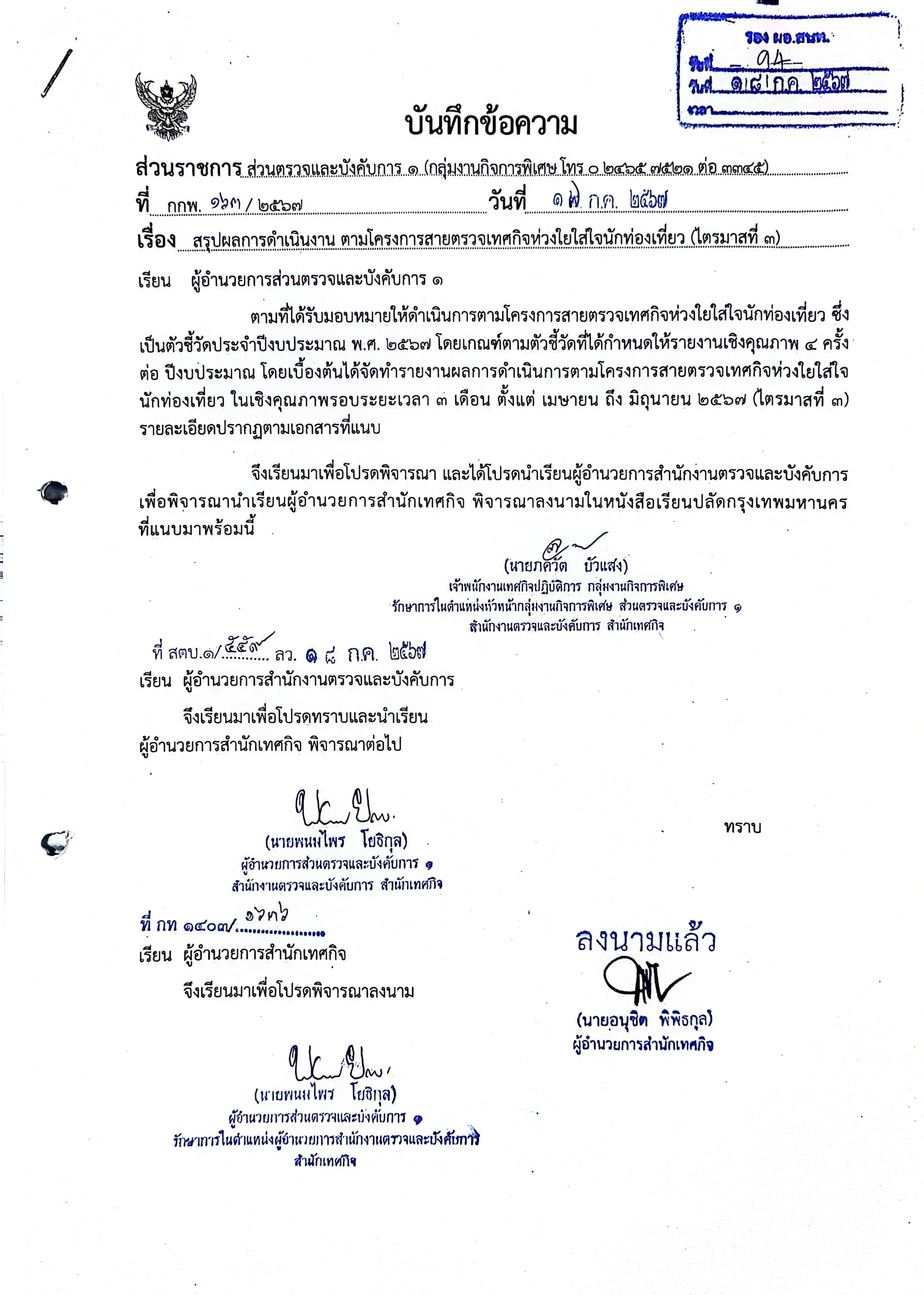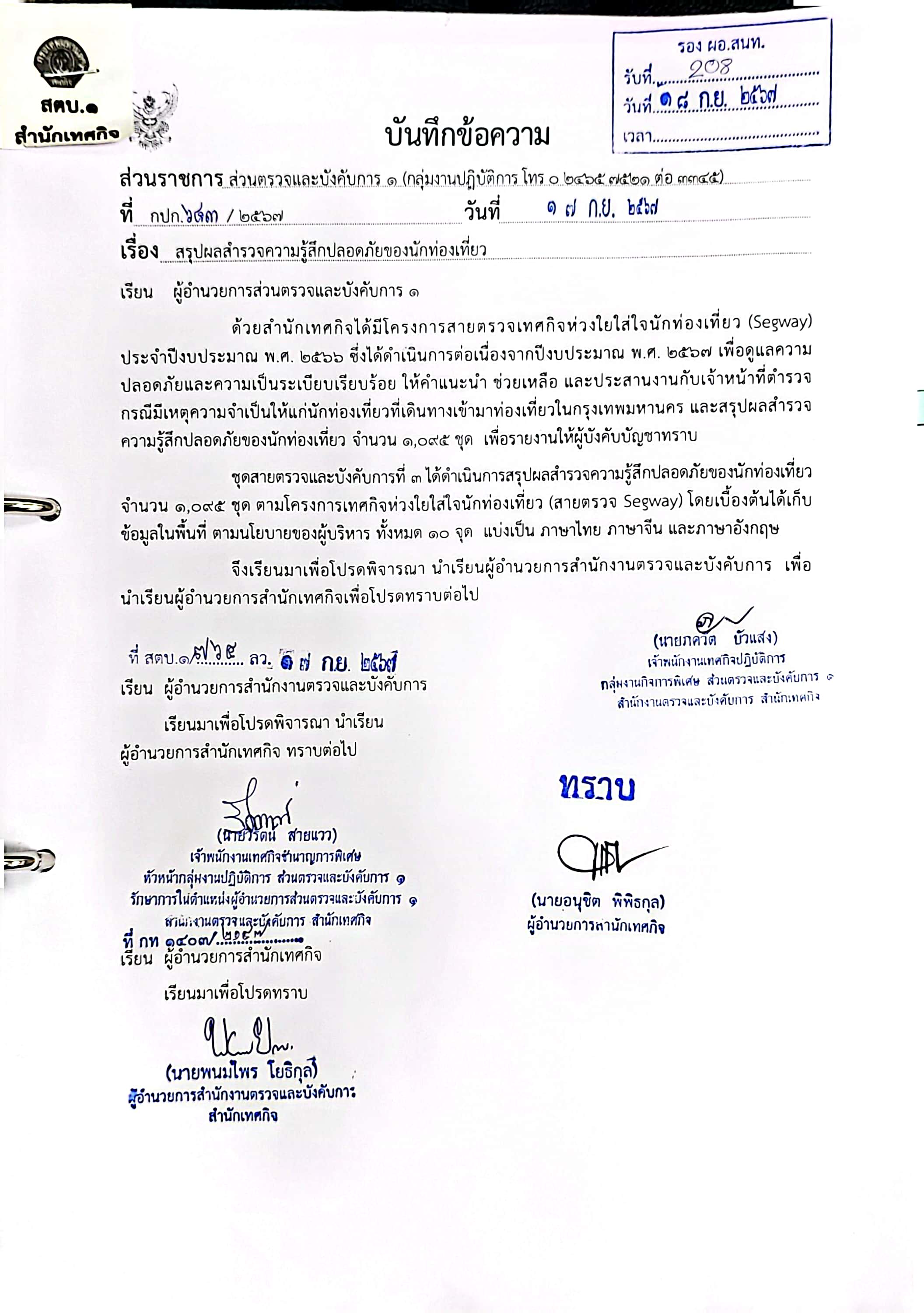 21 | สำรวจและสรุปผลความรู้สึกปลอดภัย พร้อมเผยแพร่ผลการสำรวจ ครั้งที่ 1 | 3.00 | 01-03-2024 | 31-03-2024 |