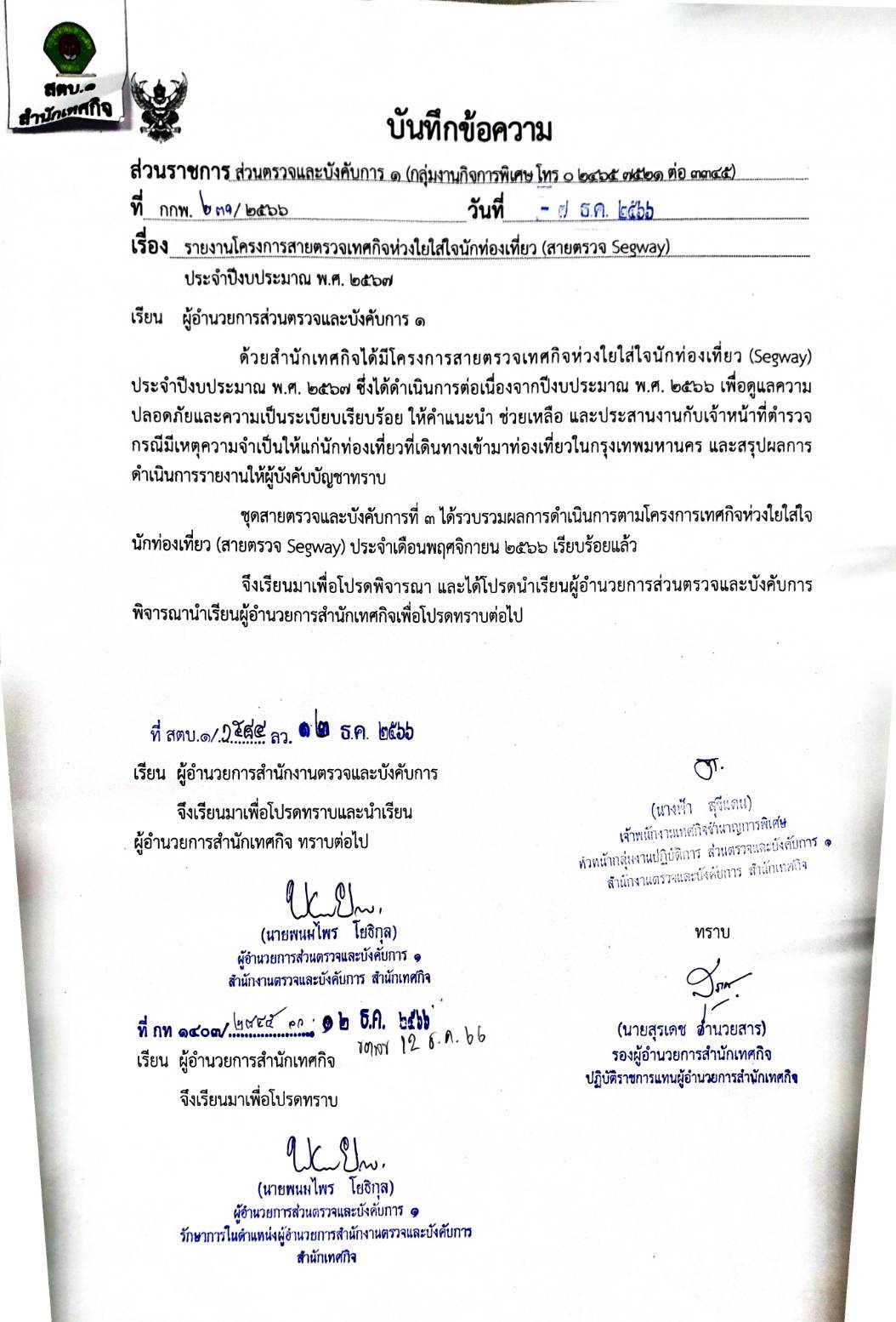 7 | ดำเนินงานตามโครงการ เดือนธันวาคม 2566 | 5.00 | 01-12-2023 | 31-12-2023 |