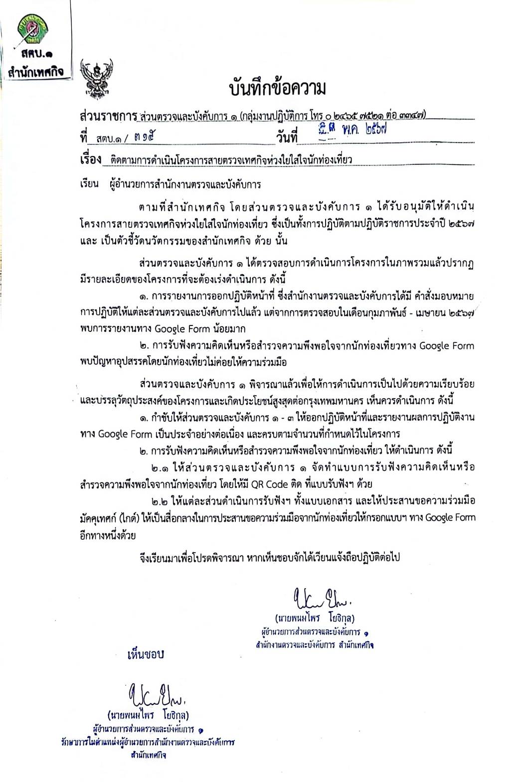 ![]() | โครงการสายตรวจเทศกิจห่วงใยใส่ใจนักท่องเที่ยว | 0.00 | 100.00 | สำนักเทศกิจ | ส่วนตรวจและบังคับการ 1 |