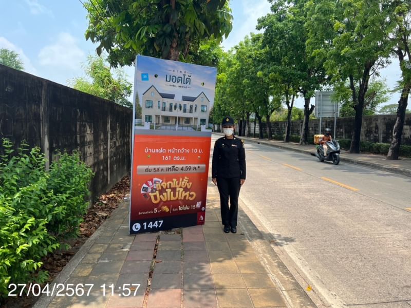 ![]() | 08-07-2024 | 100.00 | รายงานป้ายโฆษณาผิดกฎหมายประจำเดือน มิถุนายน 2567 ป้ายนักการเมือง จำนวน 0 ป้าย ป้ายที่ติดตั้งบนสะพานลอย จำนวน 0 ป้าย ป้ายบดบังทัศนวิสัยการสัญจร จำนวน 0 ป้าย ป้ายเกาะกลางถนน จำนวน 0 ป้าย ป้ายเลียนแบบป้าย กทม. จำนวน 0 ป้าย ป้ายที่ติดตามผนังกำแพงรั้ว จำนวน 0 ป้าย ป้ายหมู่บ้านจัดสรร/ป้ายคนถือ จำนวน 3 ป้าย ป้ายอื่น ๆ จำนวน 14 ป้าย รวมทั้งสิ้น จำนวน 17 ป้าย ปรับเป็นพินัย จำนวน 0 คดี เป็นเงิน 0 บาท | ||