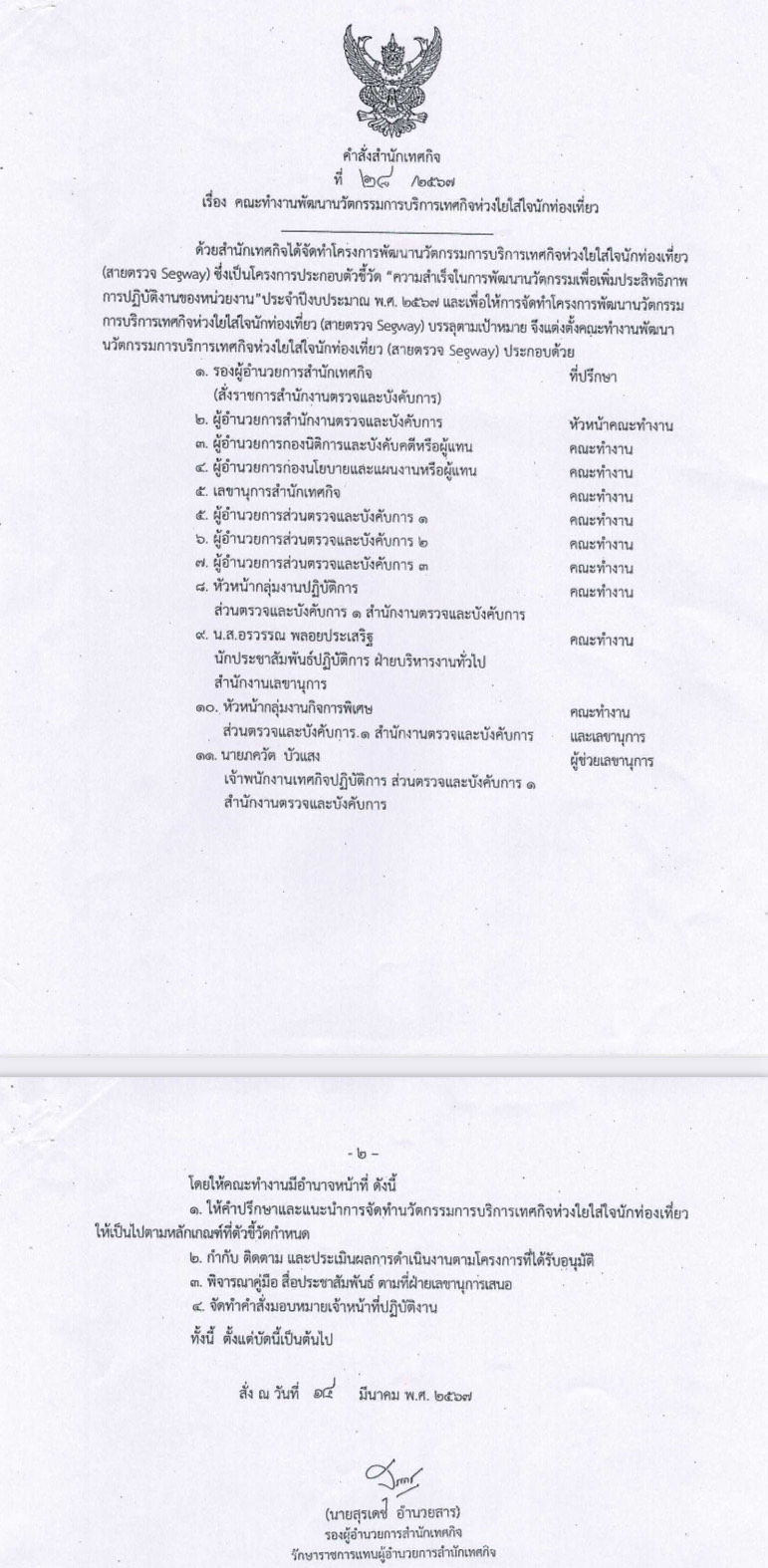 รายละเอียดโครงการ : โครงการพัฒนานวัตกรรมบริการเทศกิจห่วงใยใส่ใจนักท่องเที่ยว (สายตรวจ Segway) (อปก.2 Innovation Base) (ID: 6580)