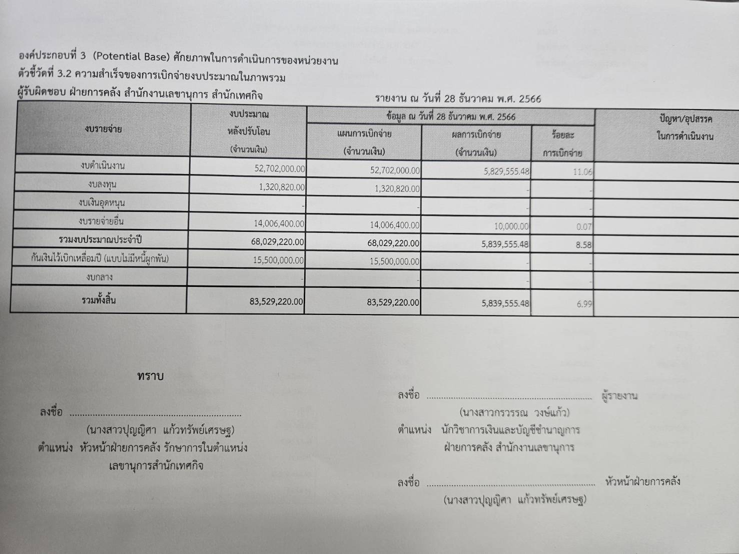 ![]() | - | องค์ประกอบที่ 3.2 : ความสําเร็จของการเบิกจ่ายงบประมาณในภาพรวม | ร้อยละ | 84.62 | 474.39 | 560.61 |