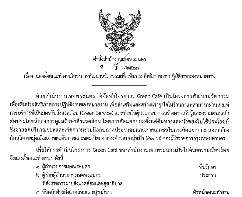 22-08-202410.00มอบป้ายแก่ร้านที่ผ่านเกณฑ์ที่มีบริการที่เป็นมิตรกับสิ่งแวดล้อม เมื่อวันพุธที่ 21 สิงหาคม 2567 ณ ห้องประชุมเพชรพระนคร อาคาร 2 ชั้น 5 สำนักงานเขตพระนคร