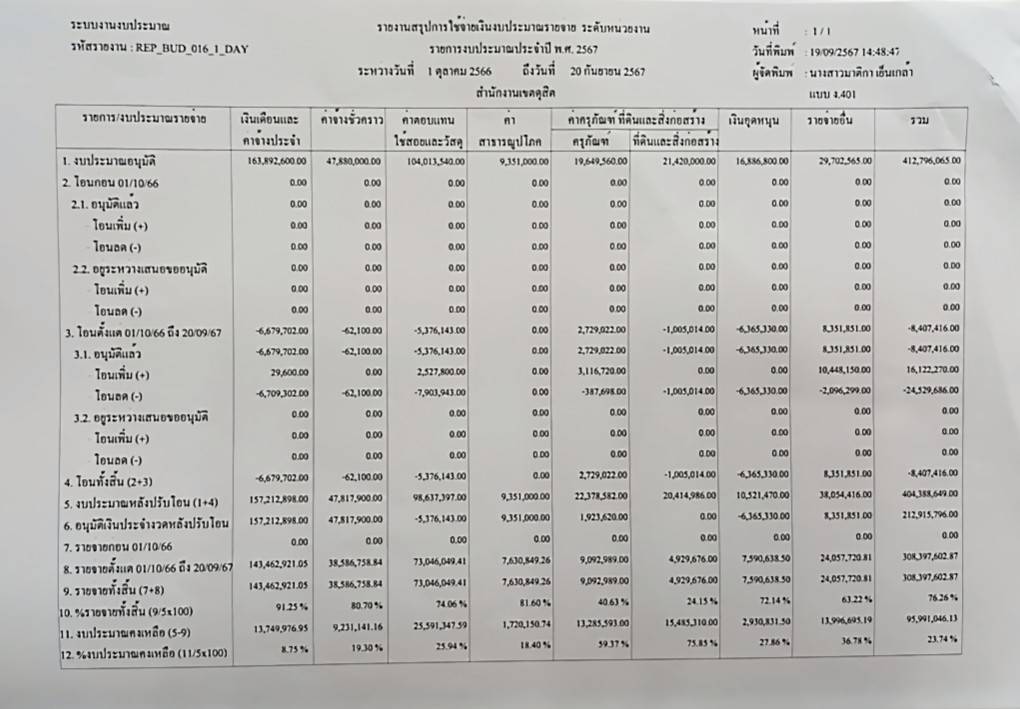 ![]() | 19-09-2024 | 5.13 | ![]() | ดำเนินการเบิกจ่ายงบประมาณในภาพรวม ณ วันที่ 25 มกราคม 2567 คิดเป็นร้อยละ 5.13 ยอดเงิน 23,014,940.95 บาท มีรายละเอียดดังนี้ 1. หมวดเงินเดือนและค่าจ้างประจำ 11,884,720.52 บาท 2. หมวดค่าจ้างชั่วคราว 3,115,354.84 บาท 3. หมวดค่าตอบแทนใช้สอยและวัสดุ 5,583,469.76 บาท 4. หมวดค่าสาธารณูปโภค 688,396.17 บาท 5. หมวดค่าครุภัณฑ์ที่ดินและสิ่งก่อสร้าง 408,000.- บาท 6. หมวดเงินอุดหนุน 782,850.- บาท 7. หมวดรายจ่ายอื่น 552,149.66 บาท | |