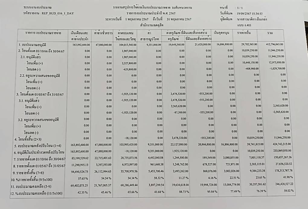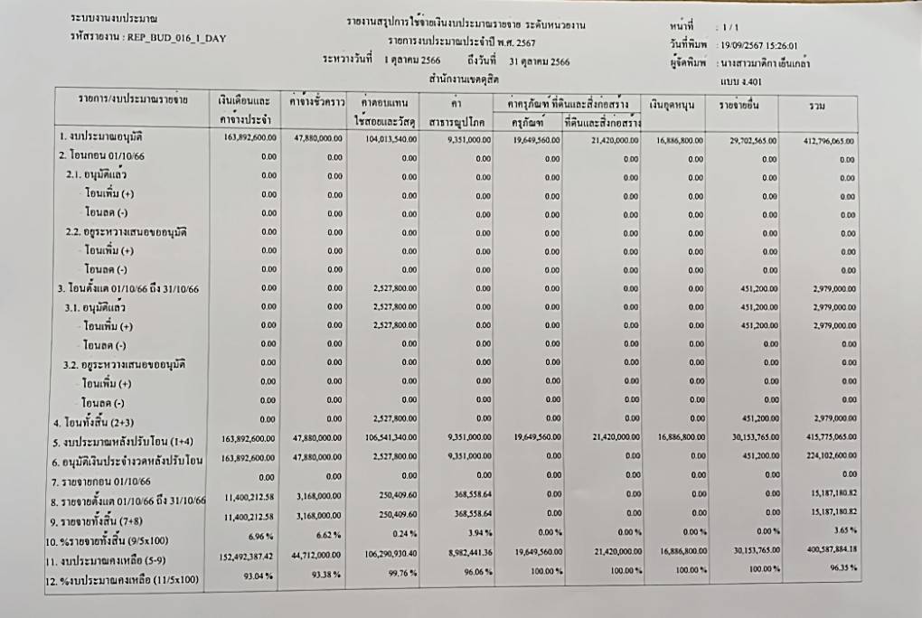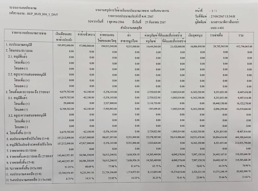 ![]() | 19-09-2024 | 3.65 | ![]() | ดำเนินการเบิกจ่ายงบประมาณในภาพรวม ณ วันที่ 25 ตุลาคม 2566 คิดเป็นร้อยละ 3.65 ยอดเงิน 15,187,180.82 บาท มีรายละเอียดดังนี้ 1. หมวดเงินเดือนและค่าจ้างประจำ 11,400,212.58 บาท 2. หมวดค่าจ้างชั่วคราว 3,168,000.- บาท 3. หมวดค่าตอบแทนใช้สอยและวัสดุ 250,409.60 บาท 4. หมวดค่าสาธารณูปโภค 368,558.64 บาท 5. หมวดค่าครุภัณฑ์ที่ดินและสิ่งก่อสร้าง 0.- บาท 6. หมวดเงินอุดหนุน 0.- บาท 7. หมวดรายจ่ายอื่น 0.- บาท | |