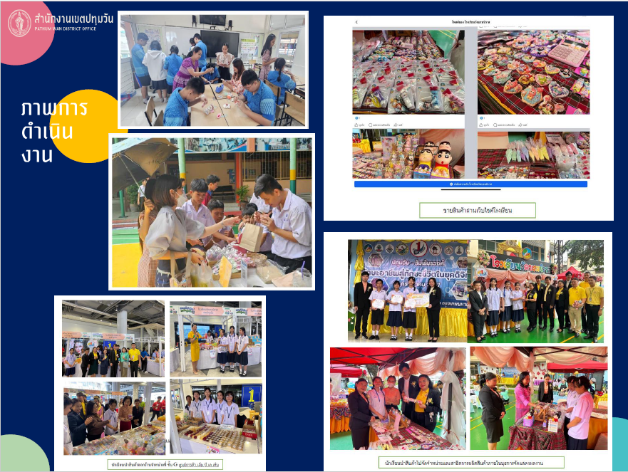 19-09-202460.00นักเรียนที่เข้าร่วมโครงการได้รับการฝึกอบรม สร้างสรรค์สินค้า เพื่อจัดแสดงและจำหน่ายในหลายช่องทาง ไม่ว่าจะเป็น ออกบูธแสดงสินค้าในโรงเรียน , นำสินค้าออกวางจำหน่ายที่ห้าง MBK , ขายสินค้าในช่องทางออนไลน์ เช่น Facebook Tiktok และเว็ปไซต์โรงเรียน เป็นต้น