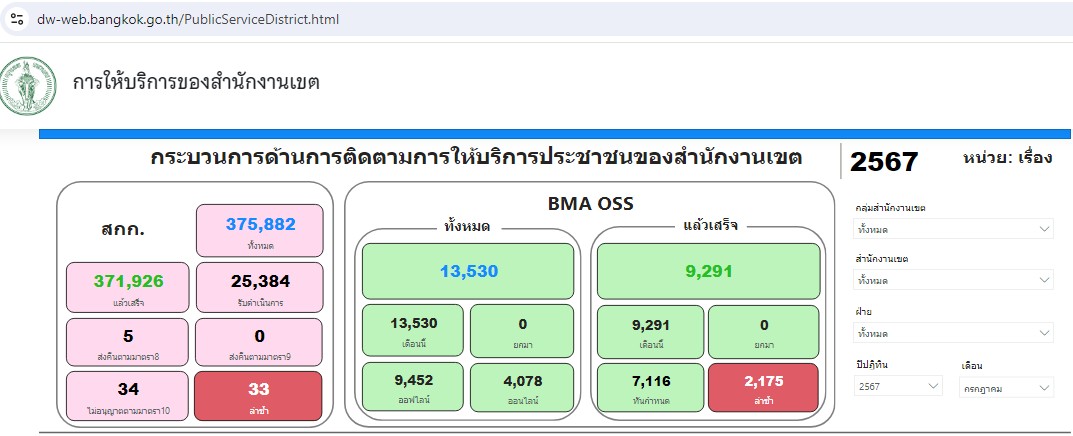 ![]() | - | OKR 3.2.04 พัฒนามาตรฐานการบริการประชาชน (% จำนวนคำขอที่เขตสามารถให้บริการได้ภายในกรอบเวลาตามคู่มือประชาชน) (ร้อยละ) | ร้อยละ | 100.00 | 158.17 | 158.17 |