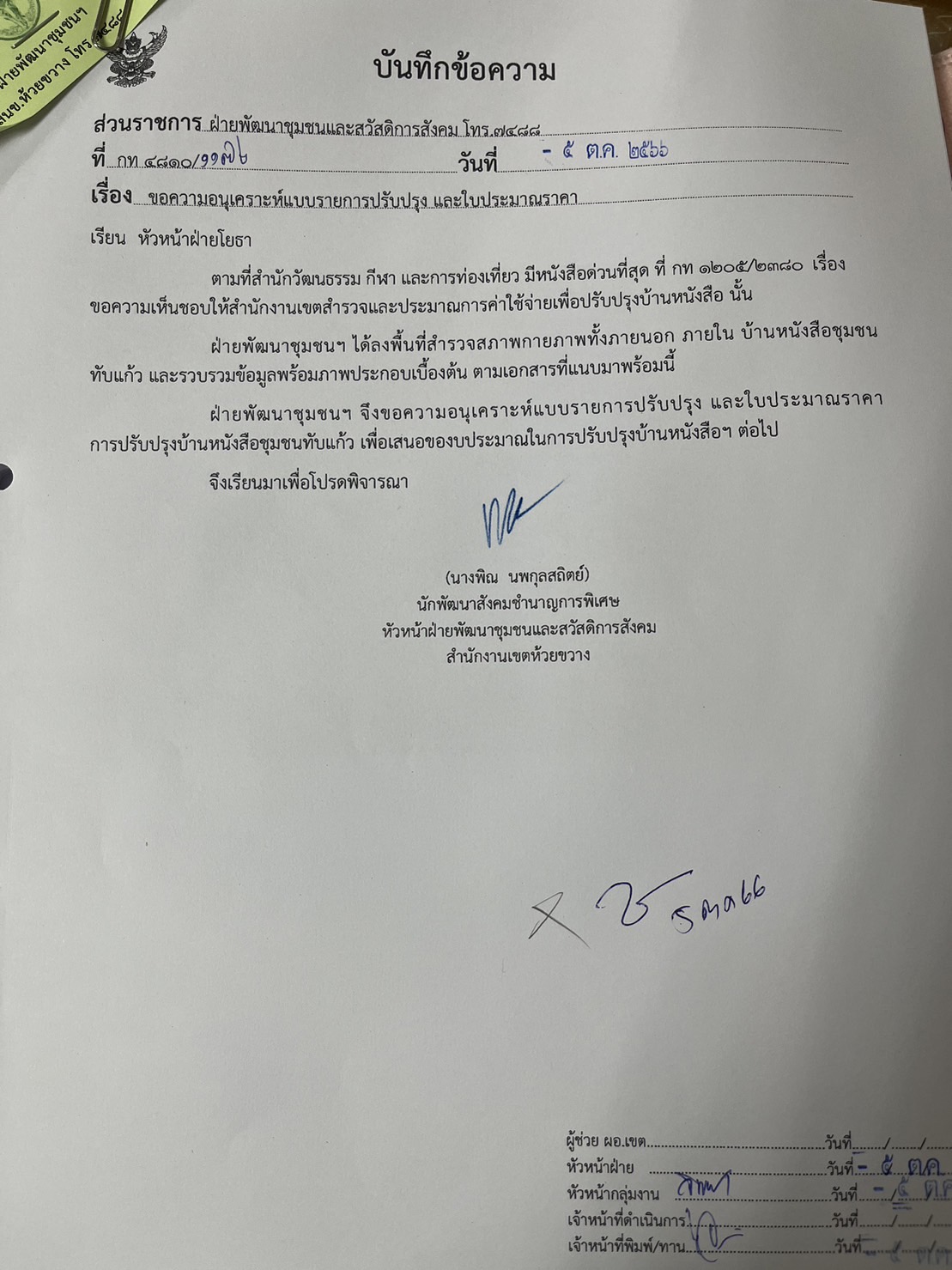 -ปรับปรุง/พัฒนา บ้านหนังสือ (แห่ง)0.00100.00สำนักงานเขตห้วยขวางฝ่ายพัฒนาชุมชนและสวัสดิการสังคม