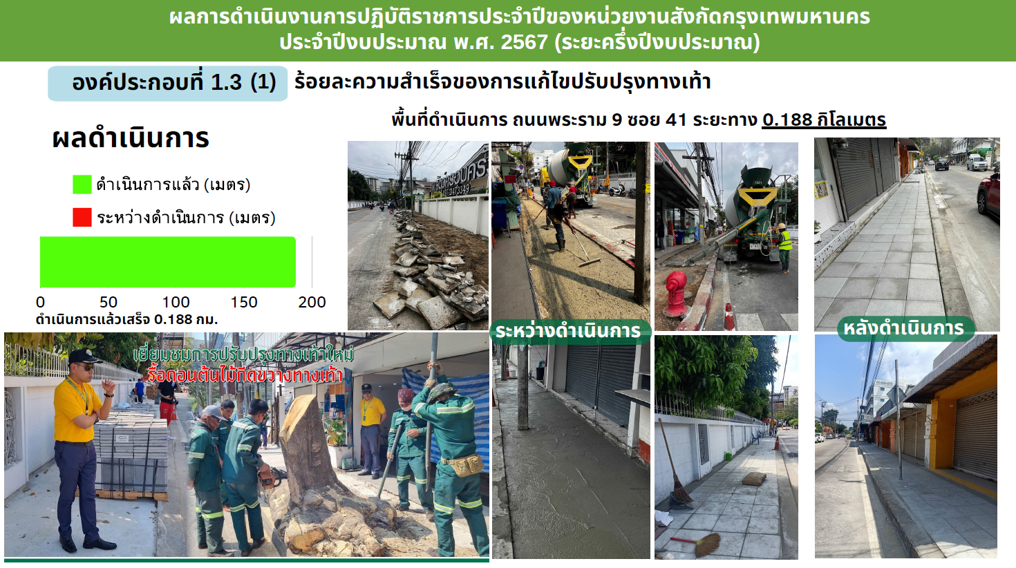 ![]() | - | 4.1 ปรับปรุงทางเท้า (กม.) : OKR 1.1.05 | กม. | 0.13 | 0.18 | 138.46 |