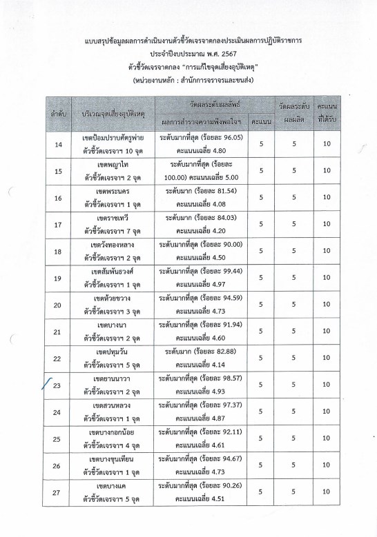 ![]() | - | 11.1 แก้ไขจุดเสี่ยงอุบัติเหตุ : OKR 2.1.07 | แห่ง | 2.00 | 2.00 | 100.00 |