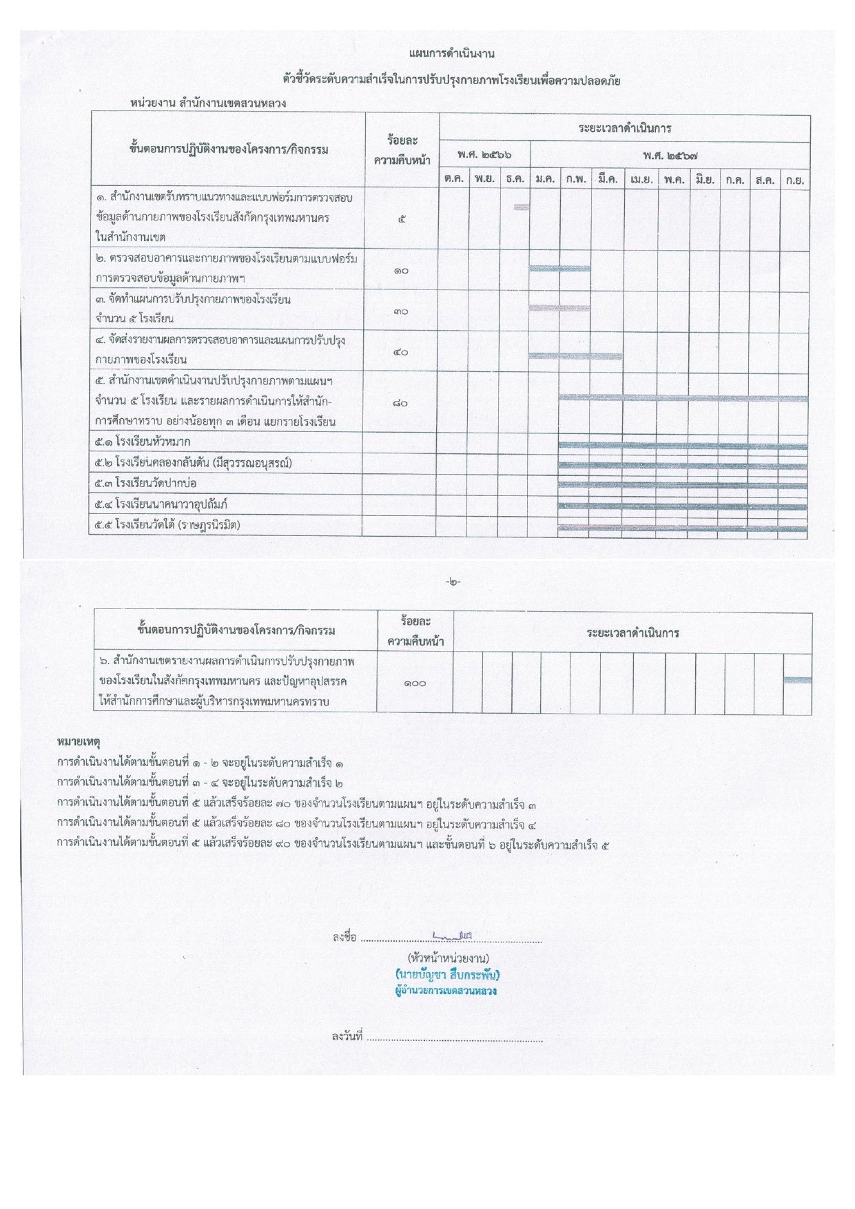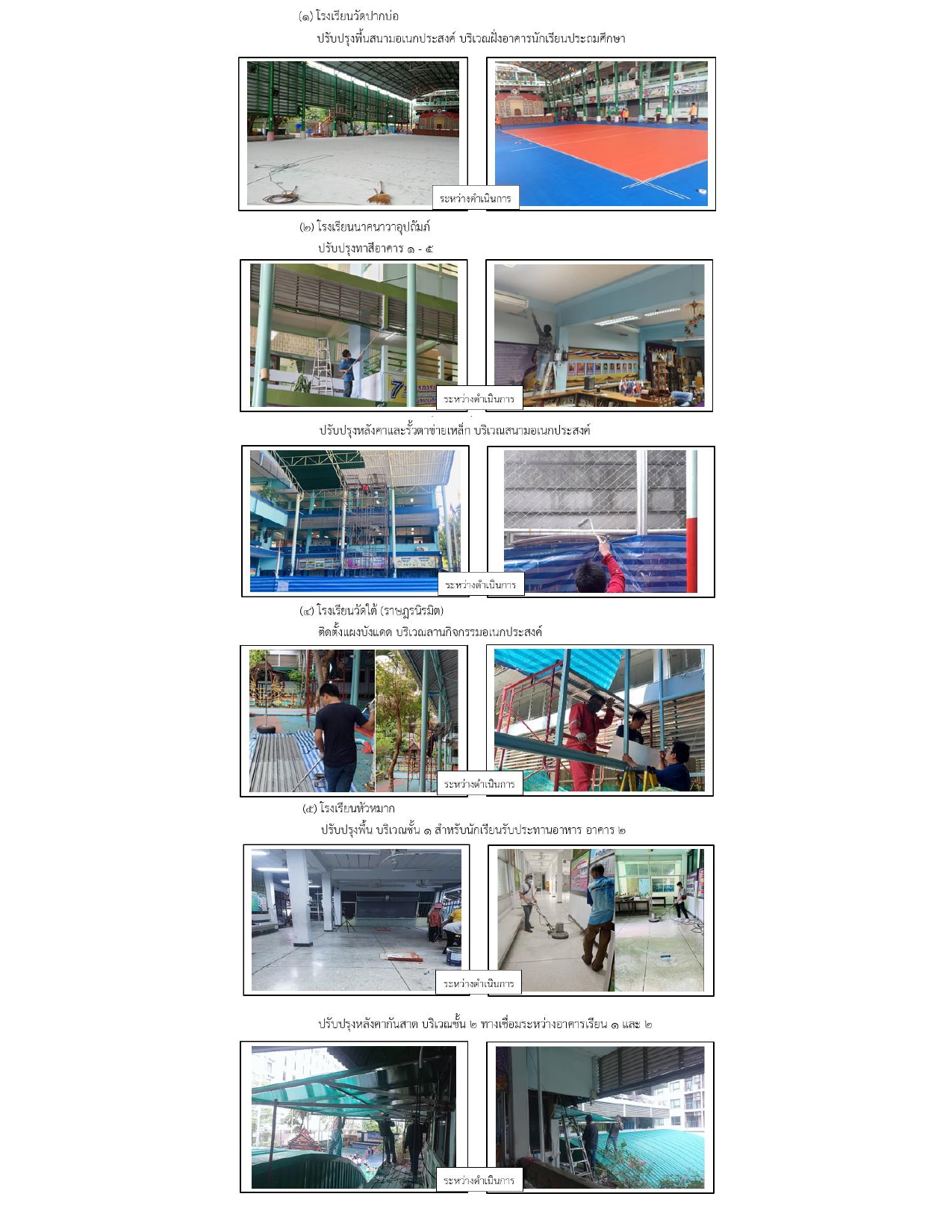 5 | สำนักงานเขตรายงานผลการดำเนินการปรับปรุงกายภาพ ของโรงเรียนในสังกัดกรุงเทพมหานคร และปัญหาอุปสรรค ให้สำนักการศึกษาและผู้บริหารกรุงเทพมหานครทราบ | 20.00 | 01-09-2024 | 30-09-2024 |