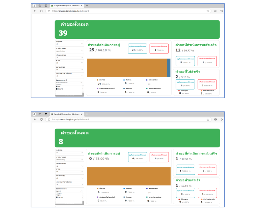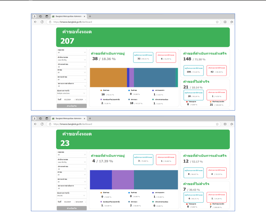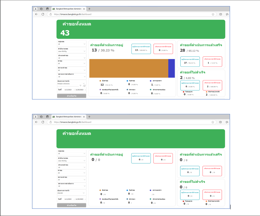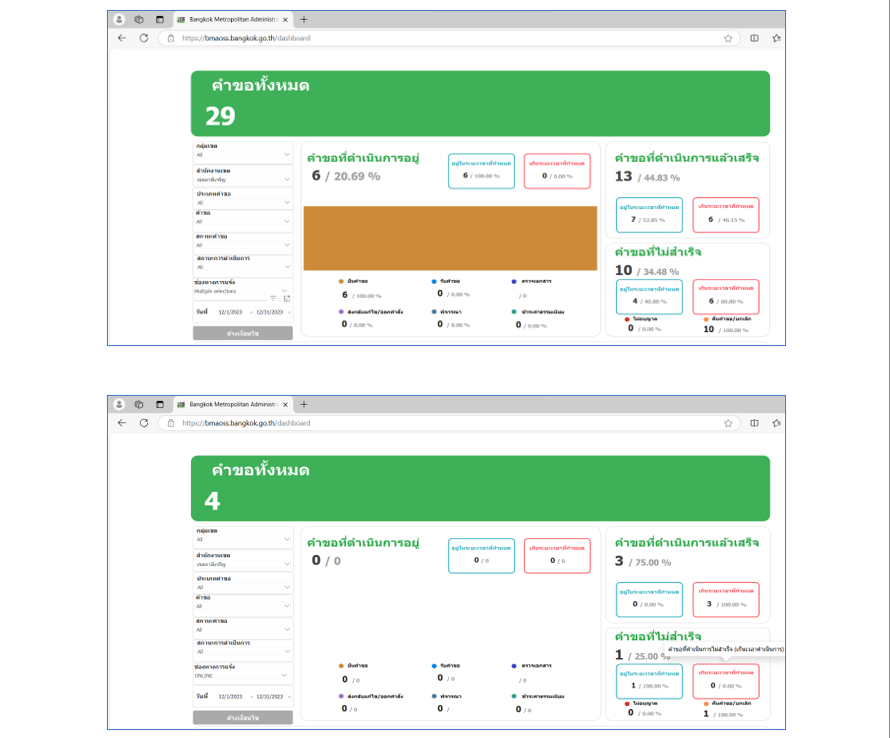 ![]() | 29-12-2023 | 21.00 | ![]() | ต.ค. 66 คำขอทั้งหมด 39 เรื่อง ผ่านช่องทาง BMA OSS 8 เรื่อง คิดเป็นร้อยละ 20.51 | |