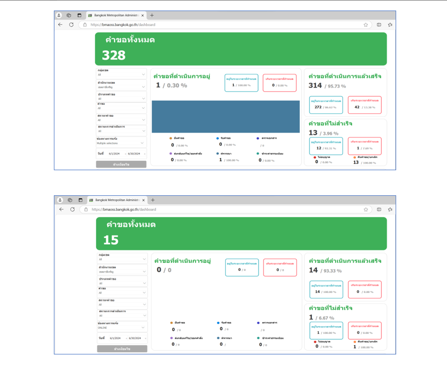 ![]() | 30-09-2024 | 4.57 | ![]() | มิ.ย. 67 คำขอทั้งหมด 328 เรื่อง ผ่านช่องทาง BMA OSS 15 เรื่อง คิดเป็นร้อยละ 4.57 |