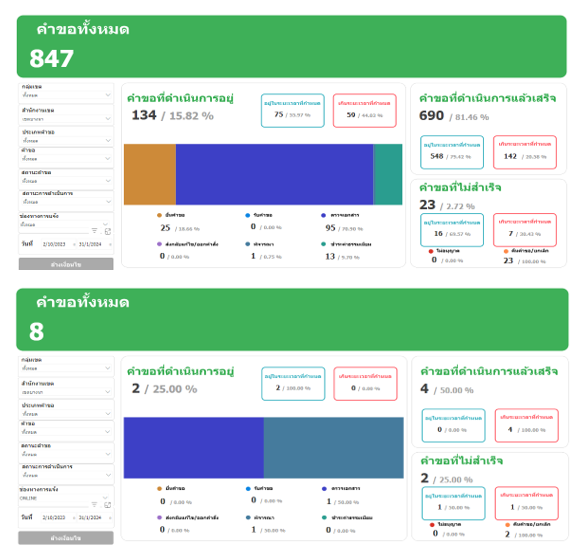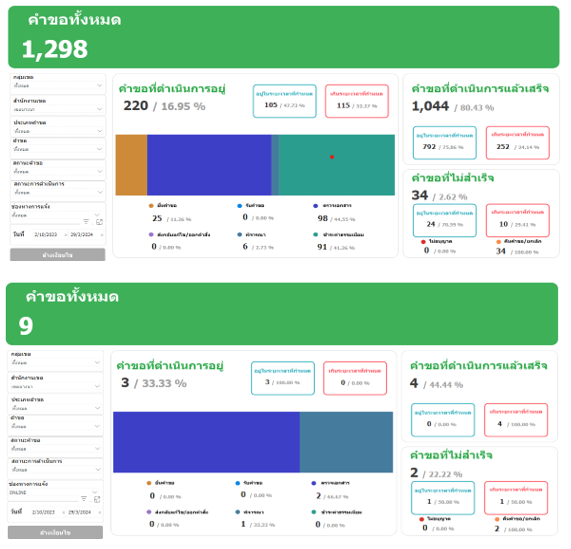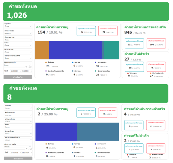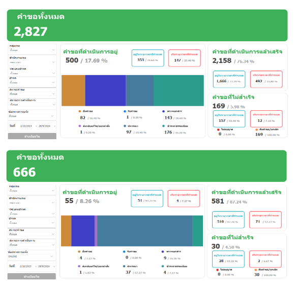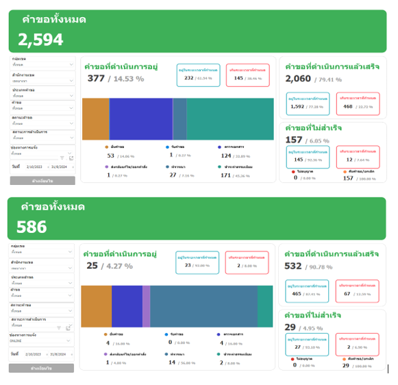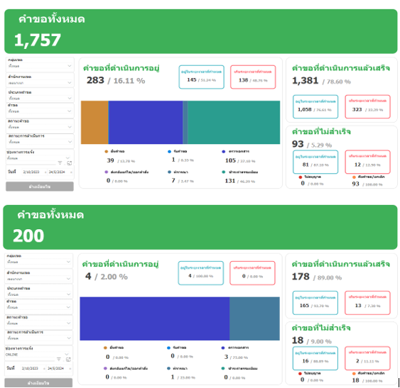| 28-06-2024 | 0.00 |  | ทุกฝ่ายให้บริการผ่านระบบ BMA OSS คิดเป็นร้อยละ 15.78 (Online 331 ราย, BFC+Online 2,097 ราย) ข้อมูล ณ วันที่ 28 มิถุนายน 2567 | |