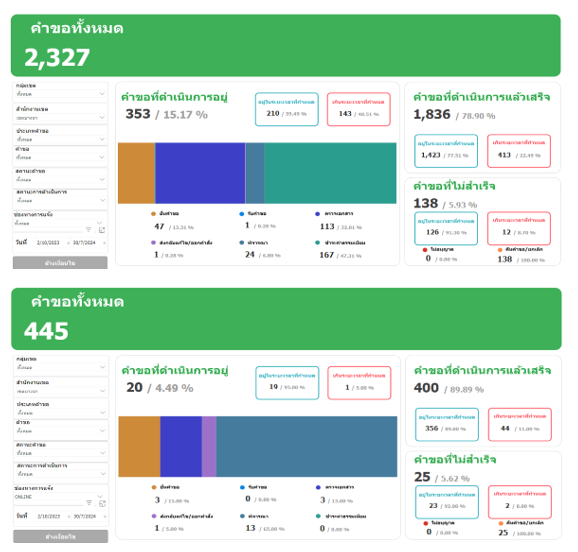 | 30-07-2024 | 0.00 |  | ทุกฝ่ายให้บริการผ่านระบบ BMA OSS คิดเป็นร้อยละ 19.12 (Online 445 ราย, BFC+Online 2,327 ราย) ข้อมูล ณ วันที่ 30 กรกฎาคม 2567 | |