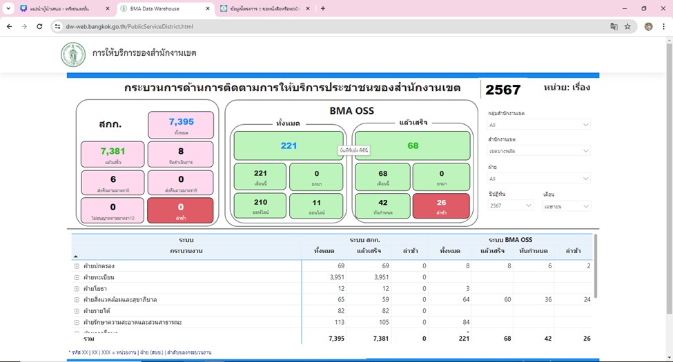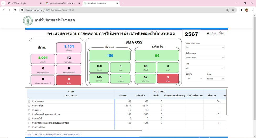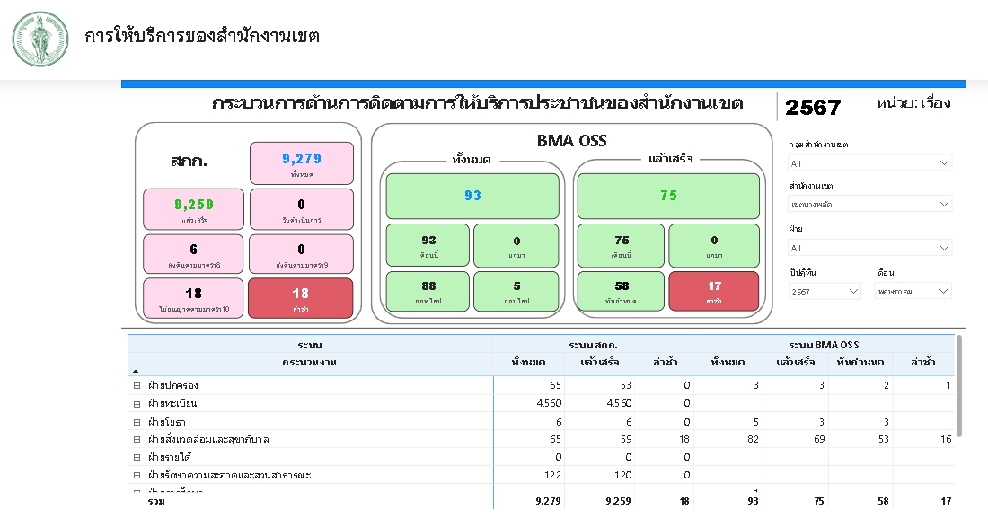 8 | ดำเนินการระบบศูนย์รับคำขออนุญาตของกรุงเทพมหานคร เดือนพฤษภาคม 2567 | 10.00 | 01-05-2024 | 31-05-2024 |