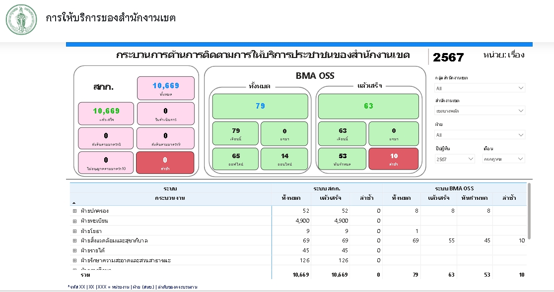 10 | ดำเนินการระบบศูนย์รับคำขออนุญาตของกรุงเทพมหานคร เดือนกรกฎาคม 2567 | 10.00 | 01-07-2024 | 31-07-2024 |