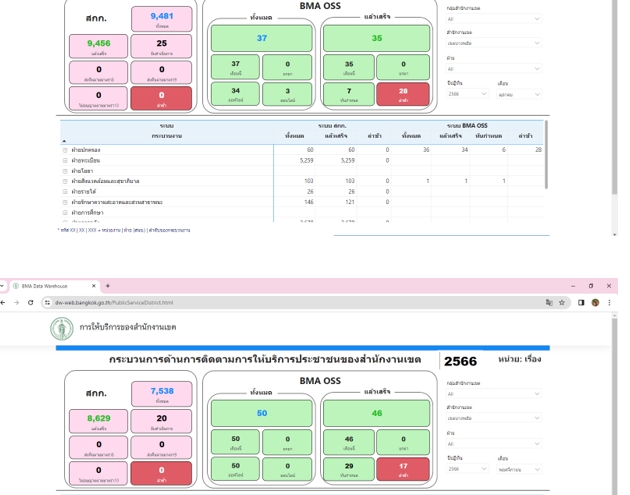![]() | 30-01-2024 | 0.00 | ![]() | - เดือนมกราคม 2567 มีจํานวนคำขอรับบริการ ตามกระบวนงานในระบบศูนย์รับคําขออนุญาตของกรุงเทพมหานคร (BMA OSS) ได้แก่ Online 5 คำขอ Offline 145 คำขอ รวมทั้งหมด 150 คำขอ (ข้อมูล 1 ต.ค. 66 ถึง 31 ม.ค. 67 จำนวน Online 8 คำขอ และจำนวน Offline 271 คำขอ) | |