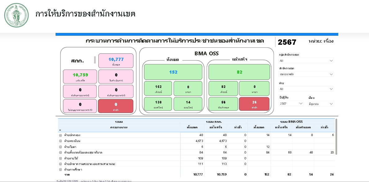 12 | ดำเนินการระบบศูนย์รับคำขออนุญาตของกรุงเทพมหานคร เดือนกันยายน 2567 | 10.00 | 01-09-2024 | 30-09-2024 |