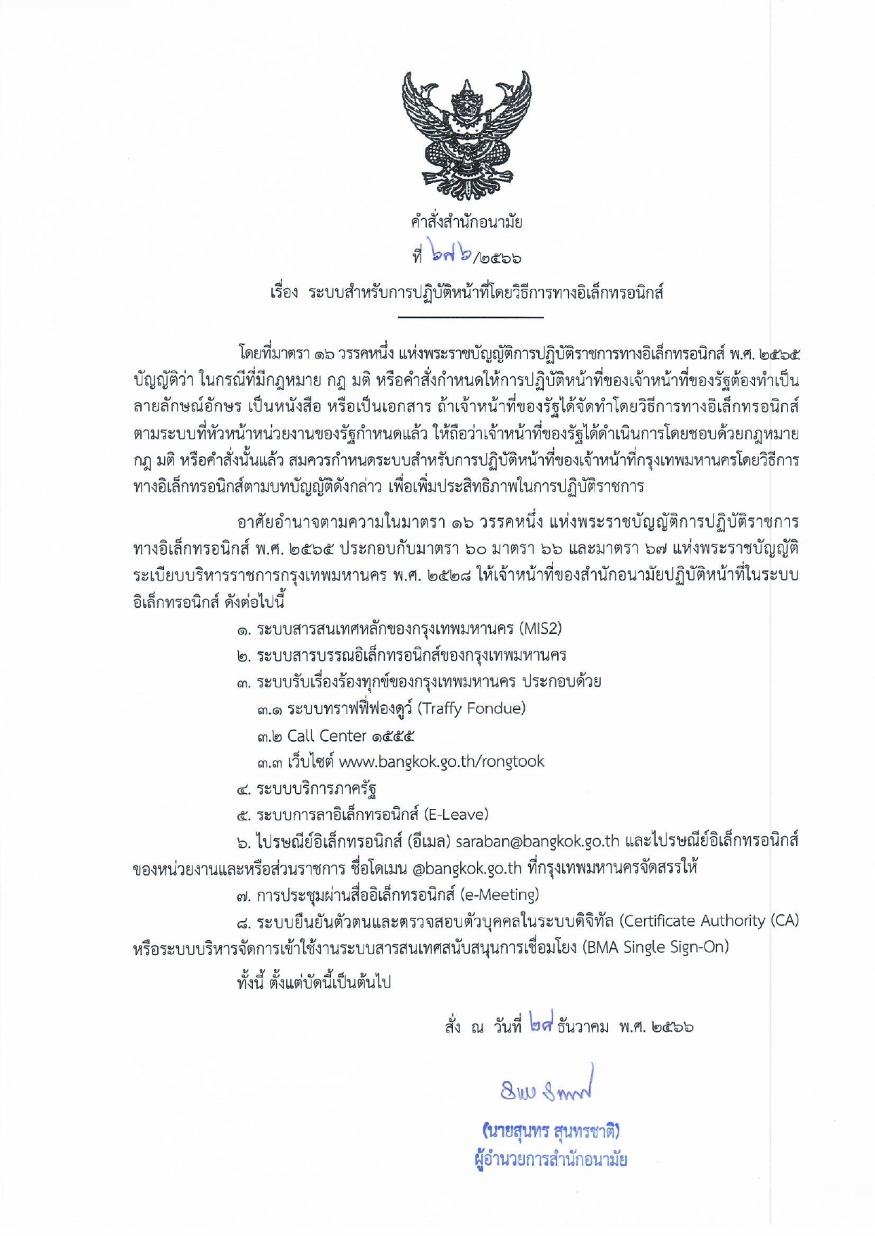 1 | จัดทำคำสั่งการใช้งานระบบสำหรับการปฏิบัติหน้าที่โดยวิธีการทางอิเล็กทรอนิกส์ | 10.00 | 01-12-2023 | 31-12-2023 |