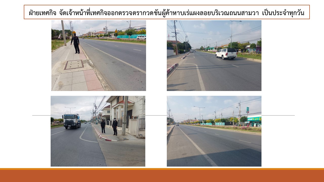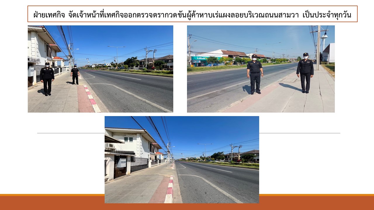 ![]() | 03-07-2024 | 0.00 | ![]() | ฝ่ายเทศกิจ จัดเจ้าหน้าที่เทศกิจออกตรวจตรากวดขันผู้ค้าหาบเร่แผงลอยบริเวณถนนสามวา เป็นประจำทุกวัน | |