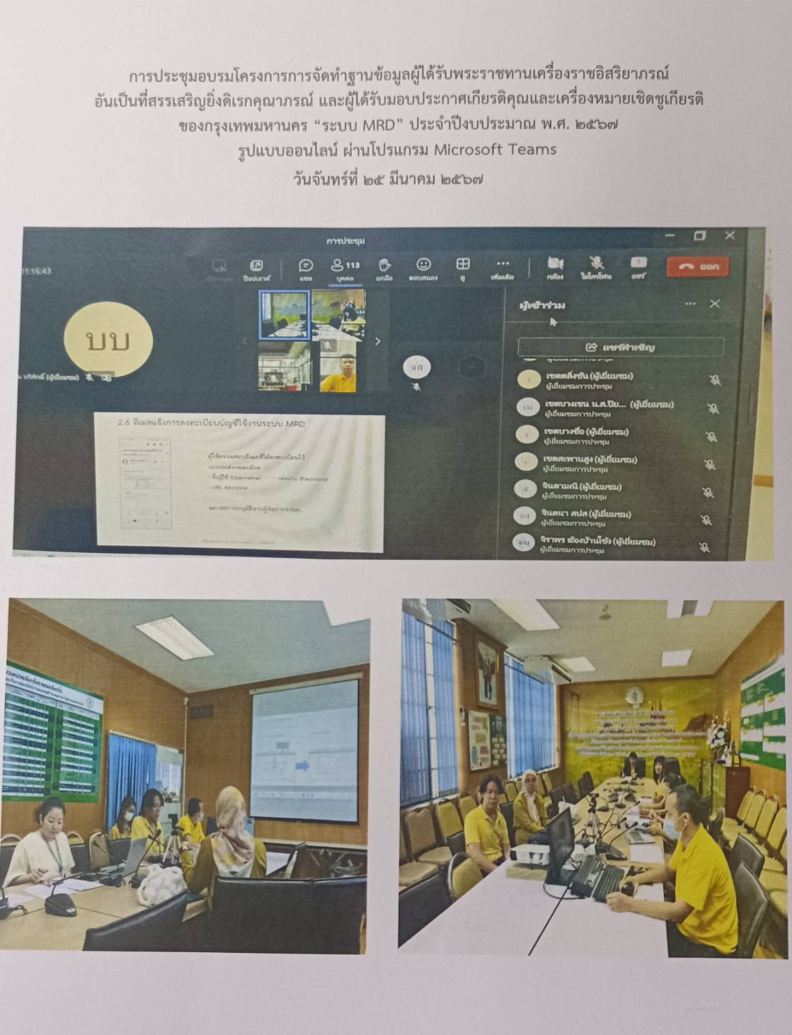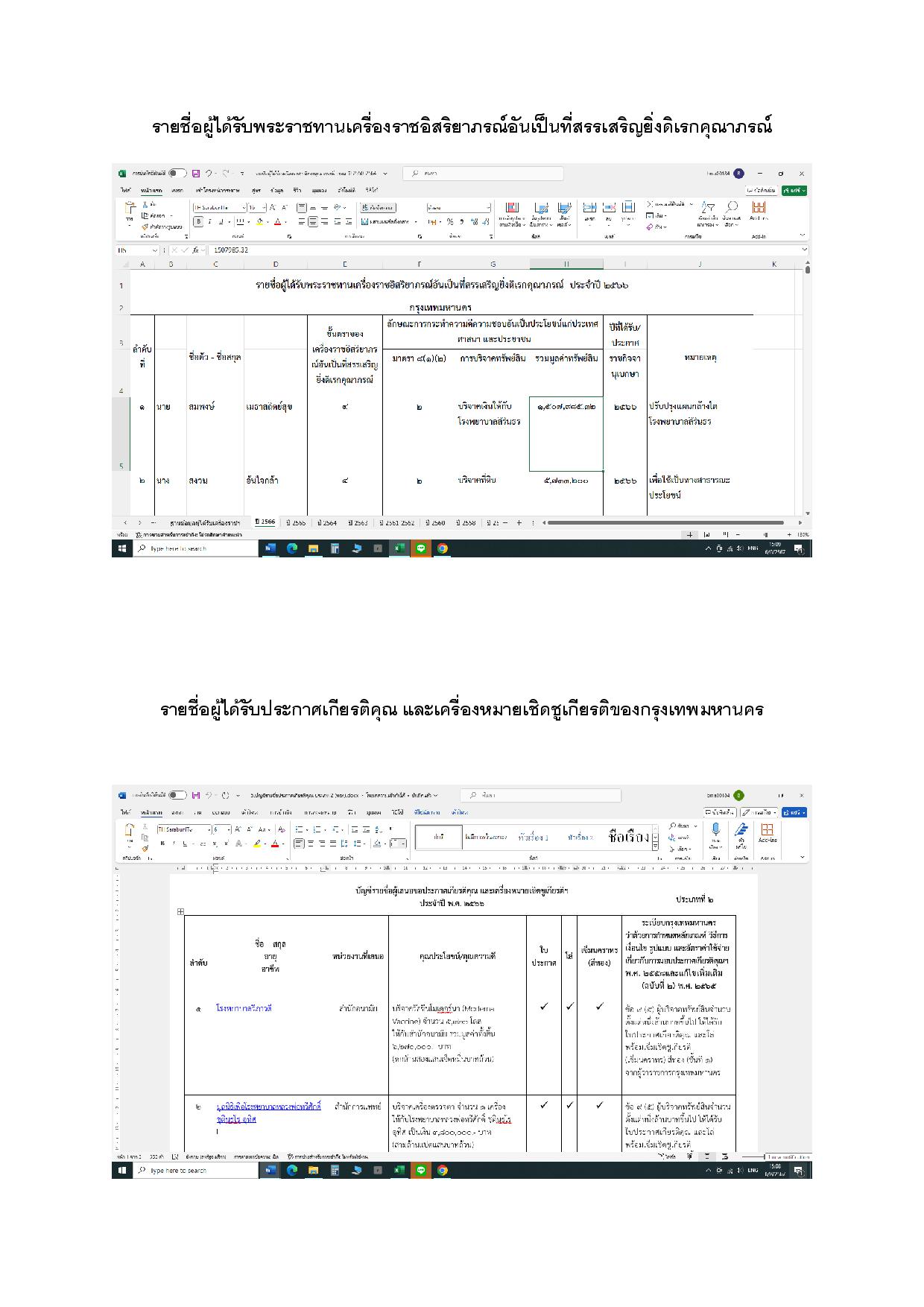 2 | จัดทำข้อมูลรายชื่อและรายละเอียดข้อมูลผู้ได้รับพระราชทานเครื่องราชอิสริยาภรณ์ฯ และผู้ได้รับประกาศเกียรติคุณฯ โดยแยกตามปีที่ได้รับมอบ | 25.00 | 01-11-2023 | 25-01-2024 |