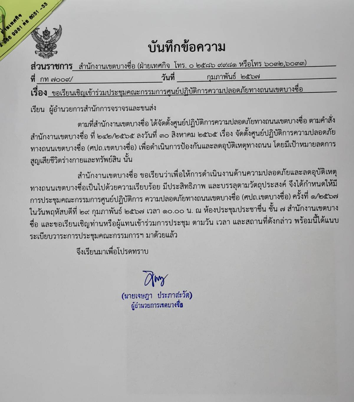 ![]() | 23-02-2024 | 0.00 | ![]() | จุดฝืดในพื้นที่เขตบางซื่อ มี 2 จุด ได้แก่ จุดที่ 1 บริเวณเชิงสะพานพิบูลสงคราม (ปากซอยวัดประดู่ธรรมาธิปัตย์) ถนนประชาราษฎร์สาย 1 จุดที่ 2 จุดกลับรถใต้สะพานข้ามแยกประชานุกูล ทำการจัดประชุม ศปถ.เขต ร่วมกับหน่วยงานที่เกี่ยวข้อง และประชาสัมพันธ์ ไม่จอดรถในที่ห้ามจอดพร้อมสื่อสารเพื่อแจ้งประชาชนเกี่ยวกับสถานการณ์จราจร | |