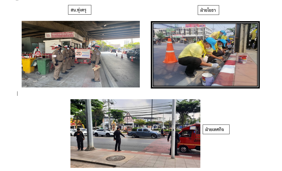 ![]() | 23-05-2024 | 1.00 | ![]() | แยกกำนันธารทิพย์ 1. เทศกิจ = ประชาสัมพันธ์ หรือรณรงค์ พร้อมสื่อสารเพื่อแจ้งประชาชนเกี่ยวกับสถานการณ์จราจร และแผนการดำเนินงาน กวดขันวินัยจราจรบนทางเท้า 2. ตำรวจ = ประสาน สถานีตำรวจนครบาลราษฎร์บูรณะอำนวยความสะดวกด้านการจราจร 3. ฝ่ายโยธา = แก้ไขปรับปรุงเชิงกายภาพ (ในส่วนที่สามารถดำเนินการได้) / ประสานหน่วยงานที่เกี่ยวข้องเพื่อ ดำเนินการแก้ไขปรับปรุงเชิงกายภาพแยกไฟแดงนาหลวง 1. เทศกิจ = ประชาสัมพันธ์ หรือรณรงค์ พร้อมสื่อสารเพื่อแจ้งประชาชนเกี่ยวกับสถานการณ์จราจร และแผนการดำเนินงาน กวดขันวินัยจราจรบนทางเท้า 2. ตำรวจ = ประสาน สถานีตำรวจนครบาลราษฎร์บูรณะอำนวยความสะดวกด้านการจราจร 3. ฝ่ายโยธา = แก้ไขปรับปรุงเชิงกายภาพ (ในส่วนที่สามารถดำเนินการได้) / ประสานหน่วยงานที่เกี่ยวข้องเพื่อ ดำเนินการแก้ไขปรับปรุงเชิงกายภาพ | |