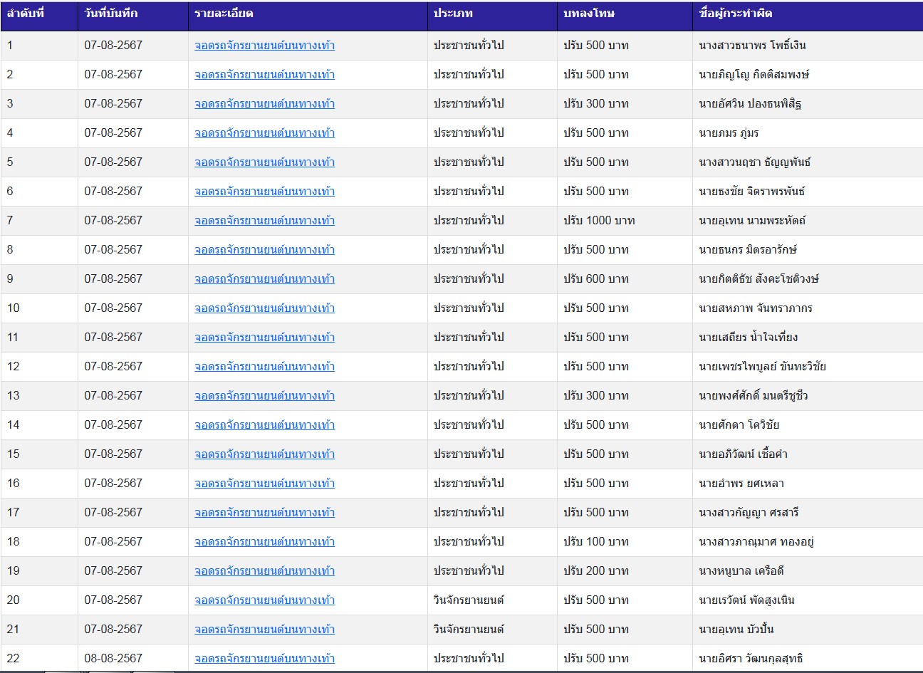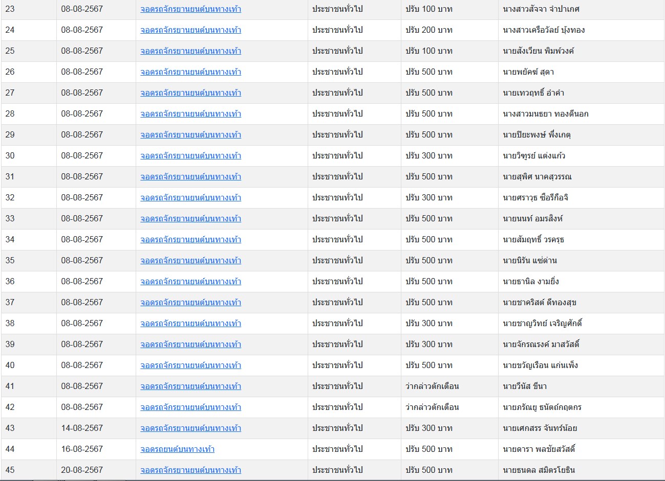 01-05-20240.00เจ้าหน้าที่เทศกิจประชาสัมพันธ์ห้ามจอดและขับขี่บนทางเท้าเป็นประจำ