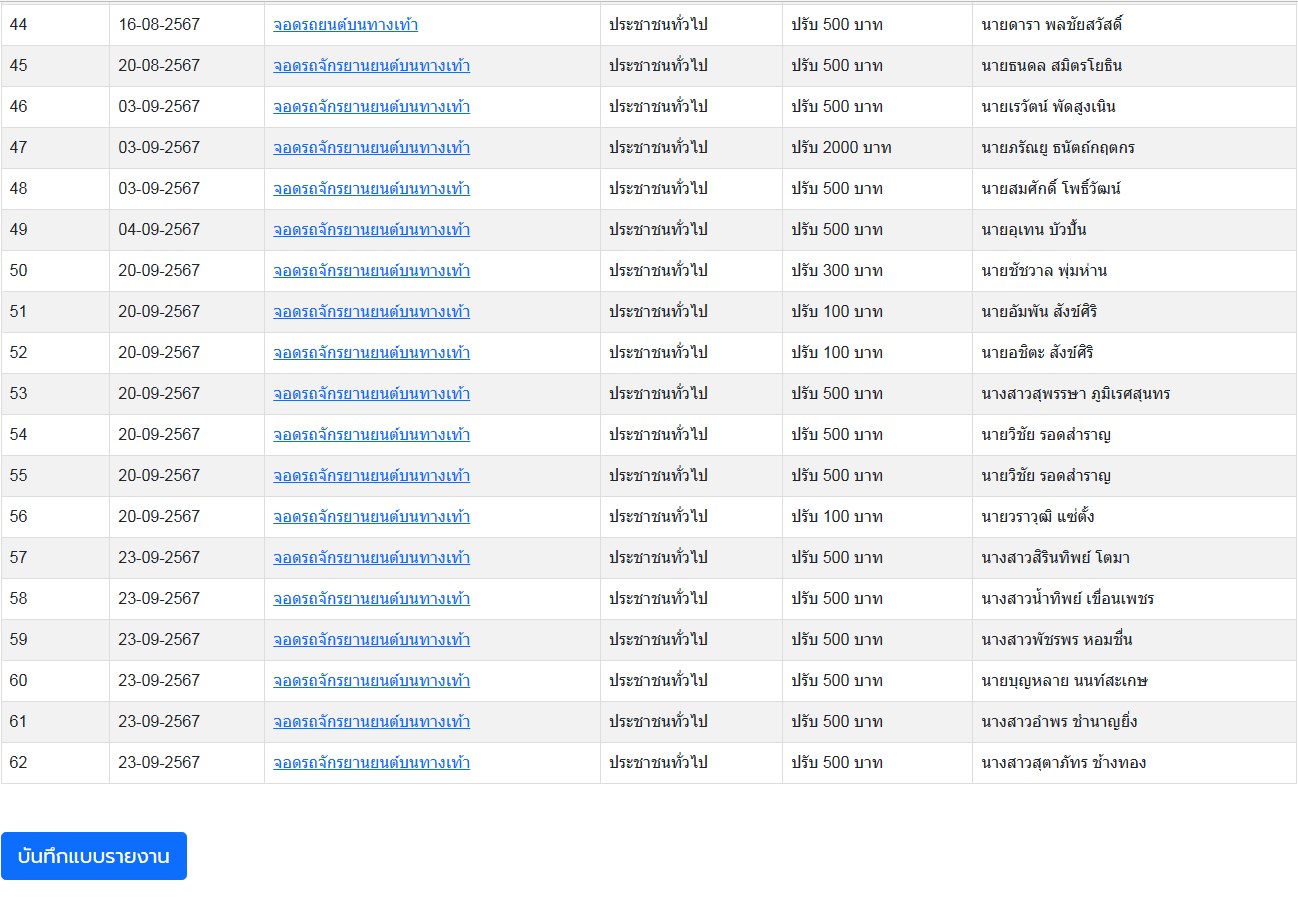 23-09-20240.00สรุปรายงานผลการบันทึกข้อมูลผู้กระทำความผิด ตามพรบ.รักษาความสะอาด พ.ศ. 2535 มาตรา 17 (2) ตามโครงการจับรถมอไซต์วิ่งบนทางเท้า สำนักงานเขตยานนาวา