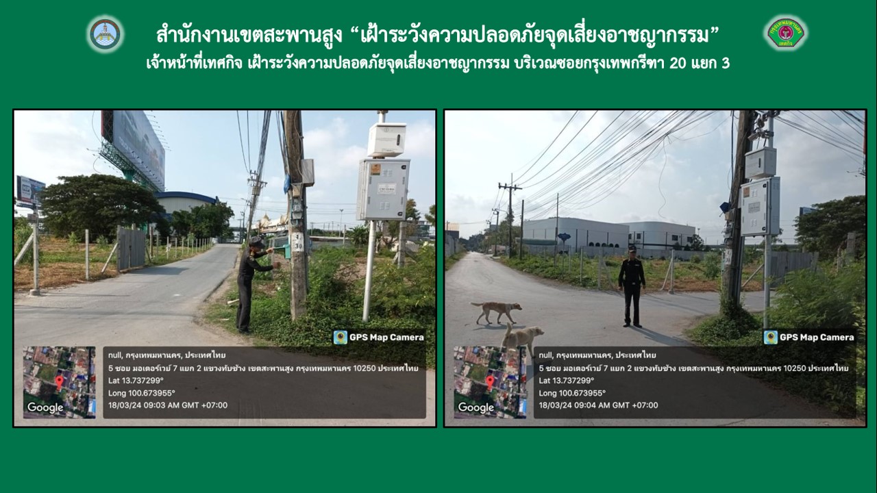 | 22-03-2024 | 0.00 |  | เจ้าหน้าที่เทศกิจ สำนักงานเขตสะพานสูง เฝ้าระวังความปลอดภัยในชีวิตและทรัพย์สินของประชาชน บริเวณทางเดินริมคลองแสนแสบ ถนนรามคำแหง | |
