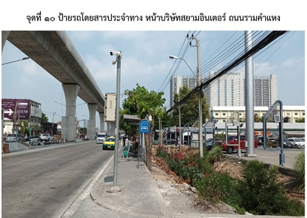 | 04-03-2024 | 1.00 |  | จุดที่ 10 ป้ายรถโดยสารประจำทาง หน้าบริษัทสยามอินเตอร์ ถนนรามคำแหง เงื่อนไขที่ต้องดำเนินการแก้ไข ติดตั้งซ่อมแซมกล้อง CCTV ตัดต้นไม้ ทำความสะอาดพื้นที่ | |