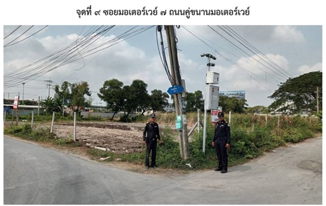 | 04-03-2024 | 1.00 |  | จุดที่ 9 ซอยมอเตอร์เวย์ 7 ถนนคู่ขนานมอเตอร์เวย์ ลักษณะของความเสี่ยง เปลี่ยวไม่มีคนสัญจรผ่าน รกร้าง เงื่อนไขที่ต้องดำเนินการแก้ไขทำความสะอาดพื้นที่ และจัดเจ้าหน้าที่เทศกิจดำเนินการเฝ้าระวังตรวจตราความปลอดภัย อย่างน้อย 1 ครั้ง/วัน | |
