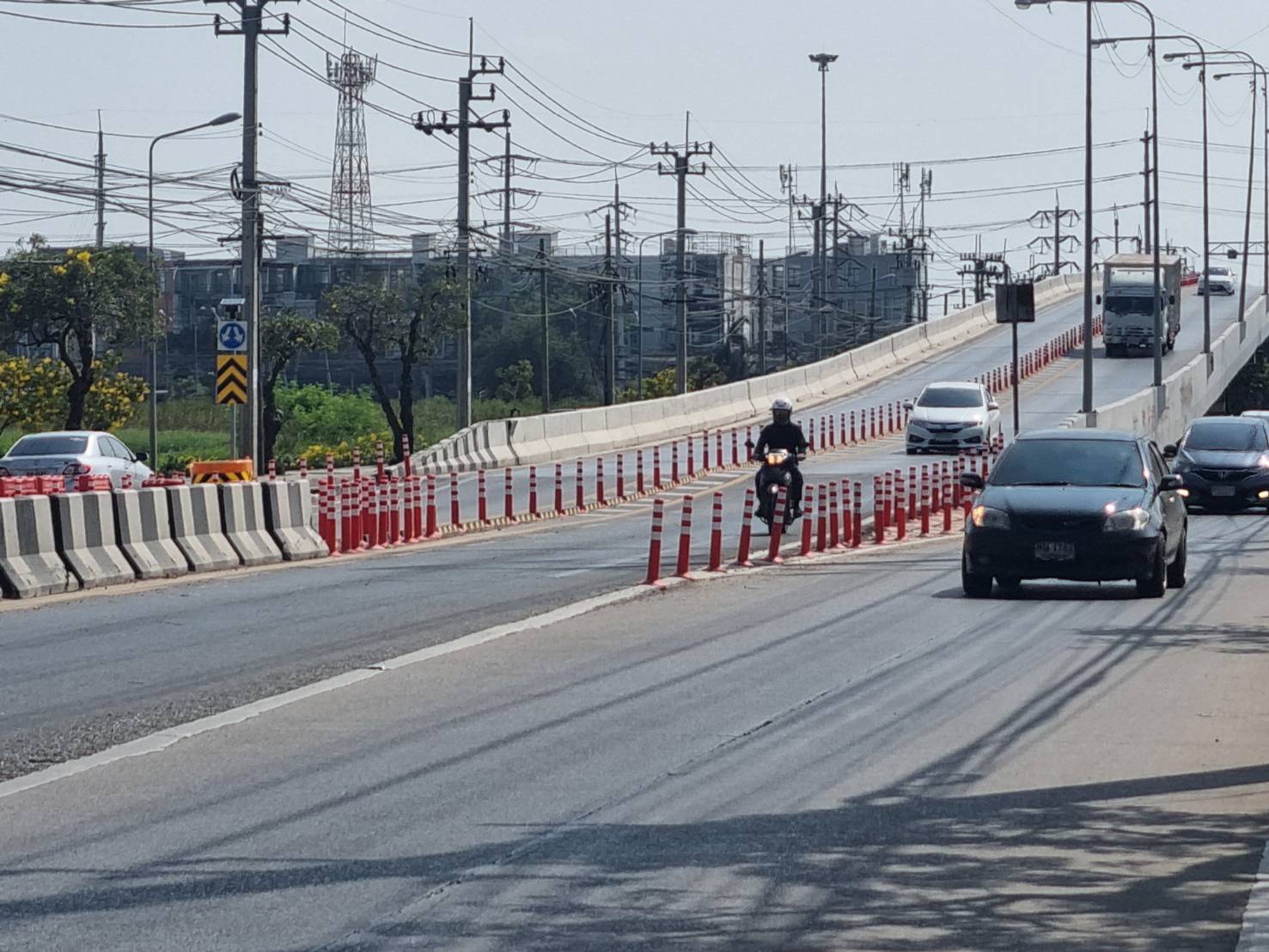 13-04-20240.00มีการติดตั้งและปรับปรุงสัญลักษณ์บอกทางบนพื้นทาง ติดตั้งหลักล้มลุกเพื่อแบ่งทิศทางการจราจร ติดตั้งป้ายเตือนเชิงลาดสะพาน และ Cusion tank