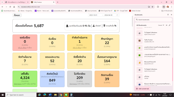 | 4 | ดำเนินการแก้ไขปัญหาและรายงานผลการดำเนินการผานแพลตฟอร์ม Traffy Fondue | 70.00 | 01-10-2023 | 30-09-2024 |