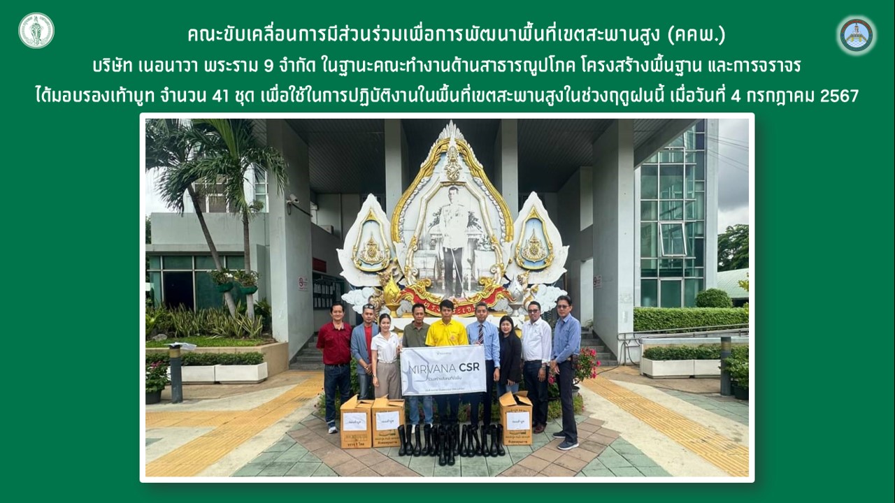 ![]() | 31-07-2024 | 0.00 | ![]() | บริษัท เนอนาวา พระราม 9 จำกัด ในฐานะคณะทำงานด้านสาธารณูปโภค โครงสร้างพื้นฐาน และการจราจร ได้มอบรองเท้าบูท จำนวน 41 ชุด เพื่อใช้ในการปฏิบัติงานในพื้นที่เขตสะพานสูงในช่วงฤดูฝนนี้ เมื่อวันที่ 4 กรกฎาคม 2567 | |