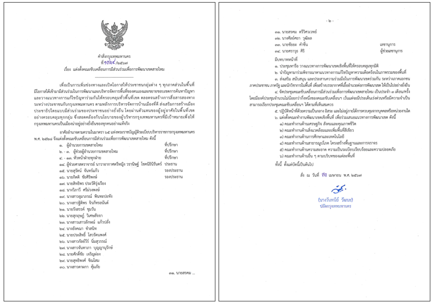 3 | สำนักงานเขตสายไหมเสนอคำสั่งแต่งตั้งคณะขับเคลื่อนการมีส่วนร่วมเพื่อพัฒนาเขตสายไหมให้สำนักงานปกครองและทะเบียน เพื่อเสนอปลัดกรุงเทพมหานครลงนามแต่งตั้ง | 20.00 | 01-03-2024 | 30-04-2024 |