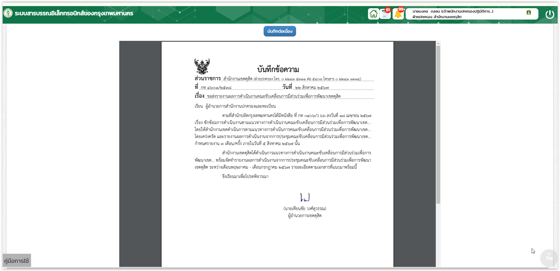 6 | จัดทำรายงานผลการดำเนินงานของคณะขับเคลื่อนการมีส่วนร่วมเพื่อการพัฒนาพื้นที่เขตดุสิต | 10.00 | 05-08-2024 | 30-09-2024 |