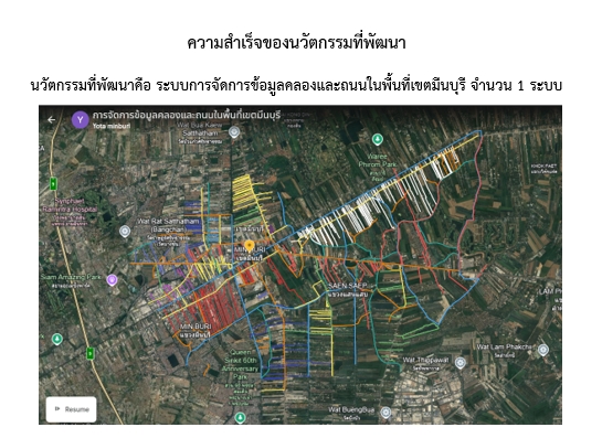 01-08-202420.00จัดทำระบบข้อมูลคลองและถนนในพื้นที่เขตมีนบุรี ผ่านระบบสารสนเทศทางภูมิศาสตร์ Google Earth เรียบร้อยแล้ว