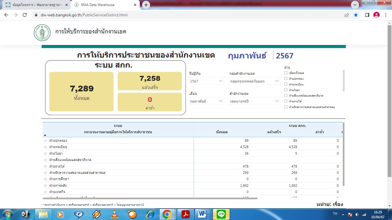 | 10-04-2024 | 100.00 |  | ดือนมีนาคม 2567 จำนวนเรื่องทั้งหมด 8,798 จำนวนเรื่องที่ดำเนินการแล้วเสร็จ 8,781