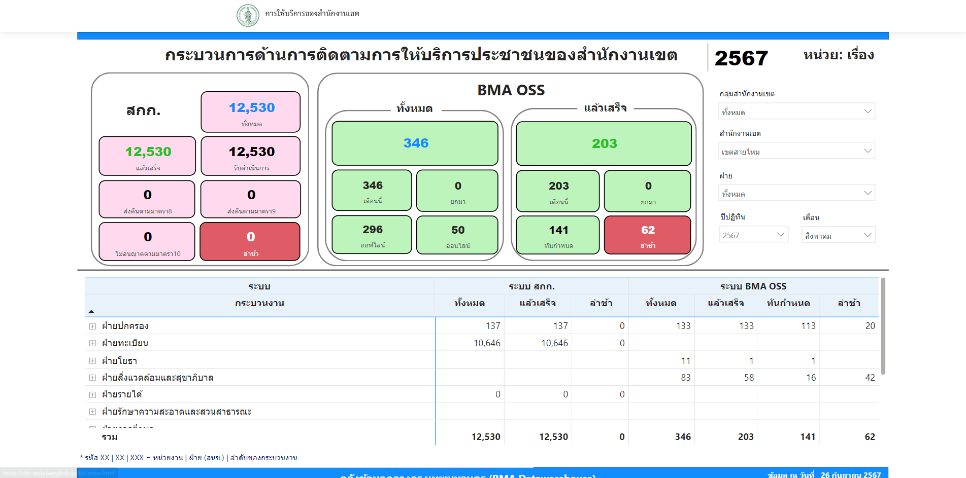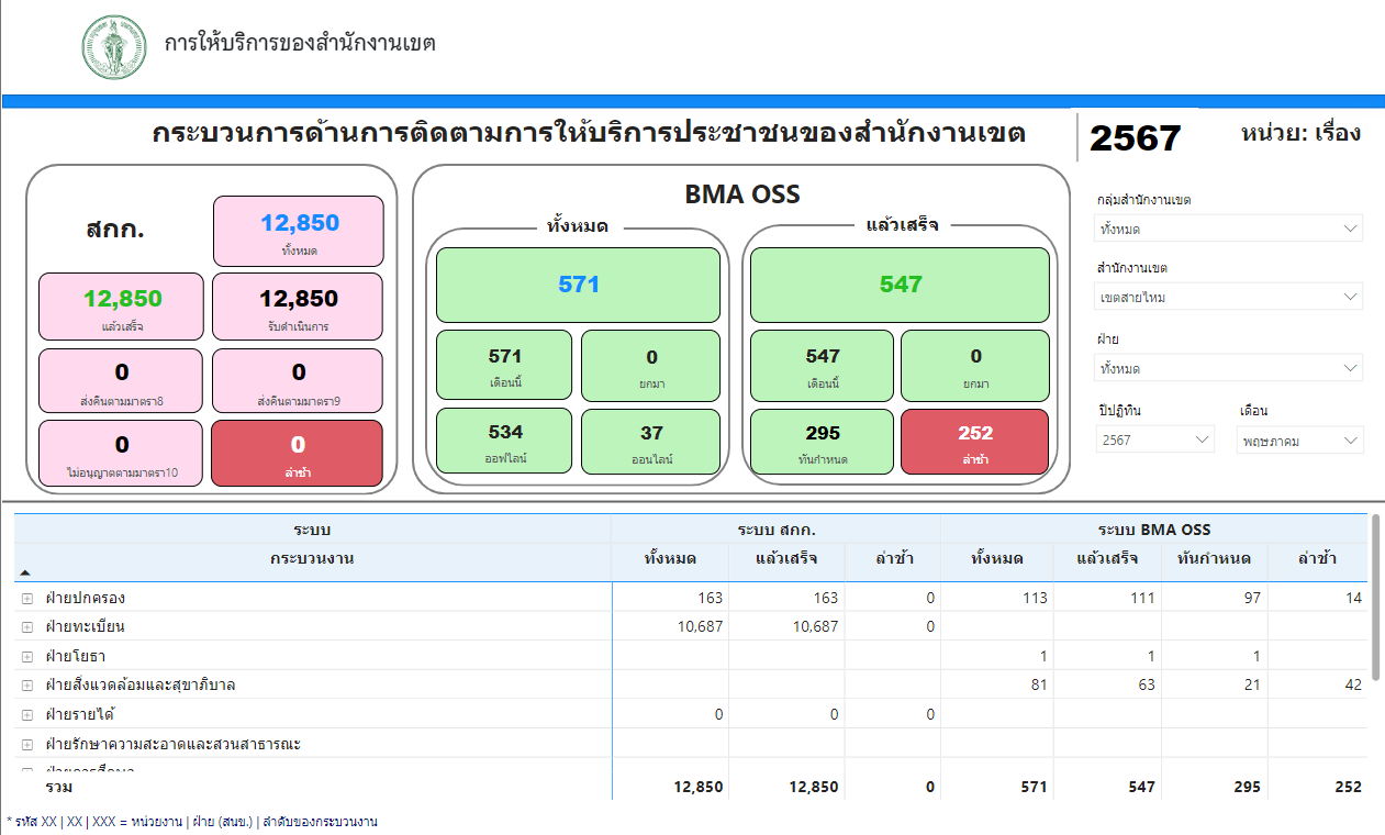 12 | รับคำขอ ให้บริการ รายงานผลดำเนินงาน เดือนกันยายน 2567 | 12.00 | 01-09-2024 | 30-09-2024 |
